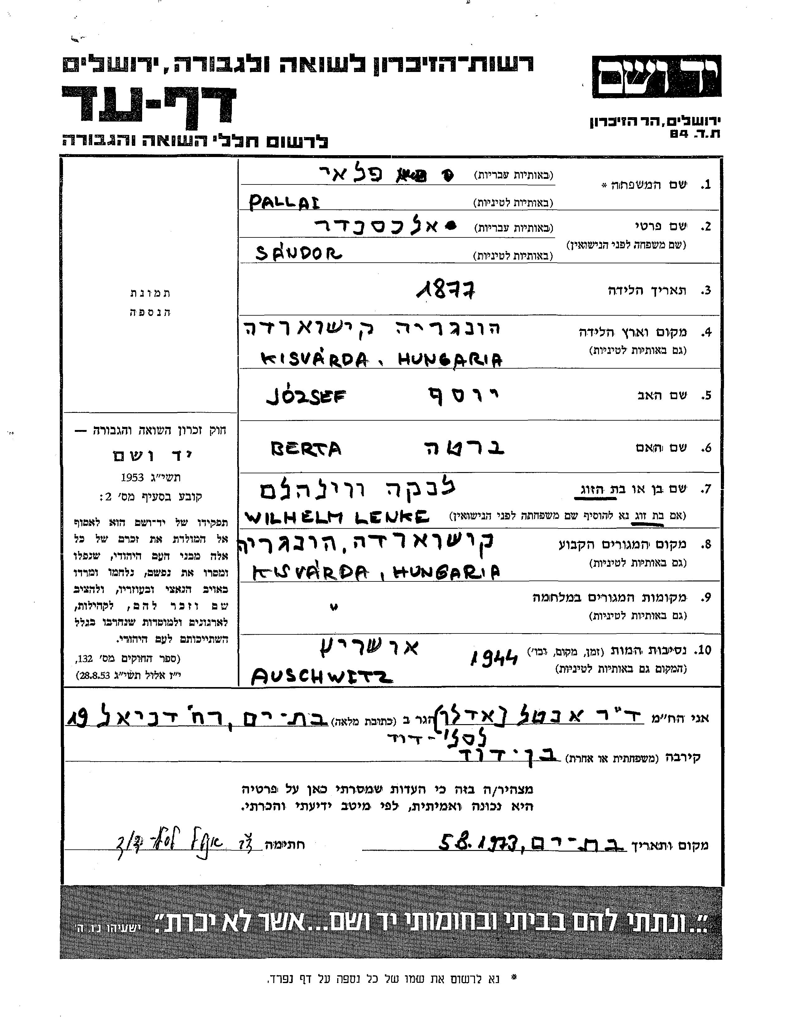 Sandor wurde in der Schoah ermordet. Todesort: Auschwitz, Polen im Jahr 1944.