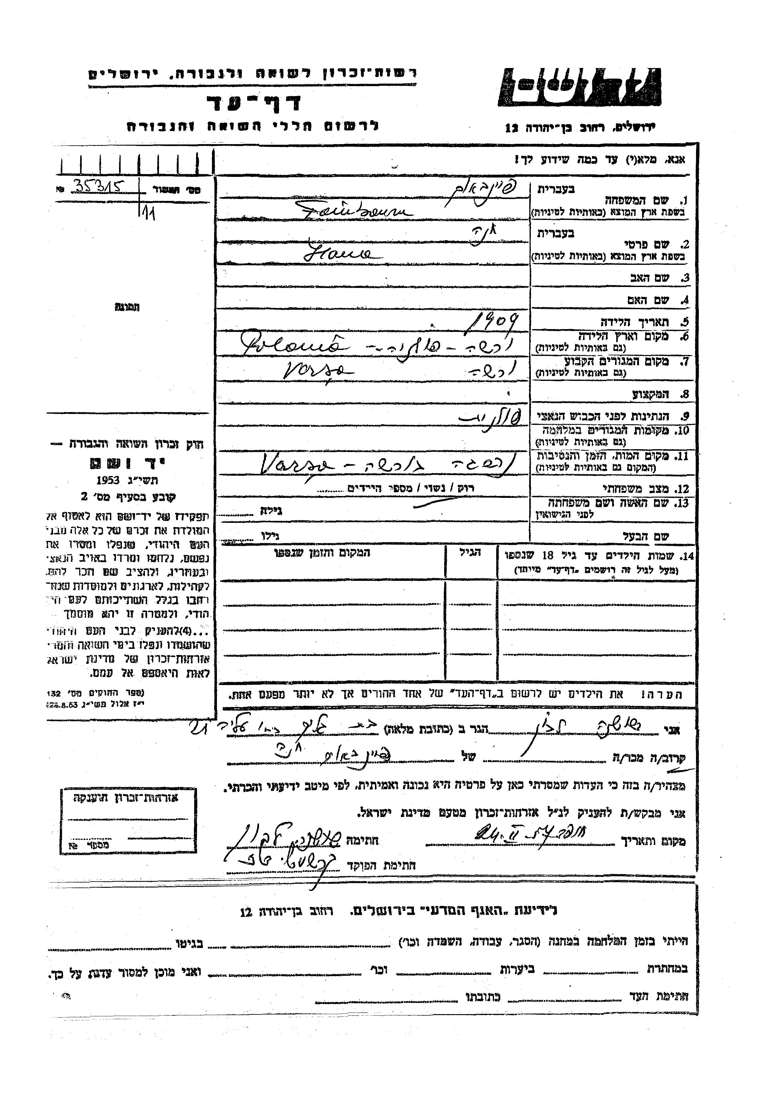 Hana wurde in der Schoah ermordet. Todesort: Warszawa, Polen.