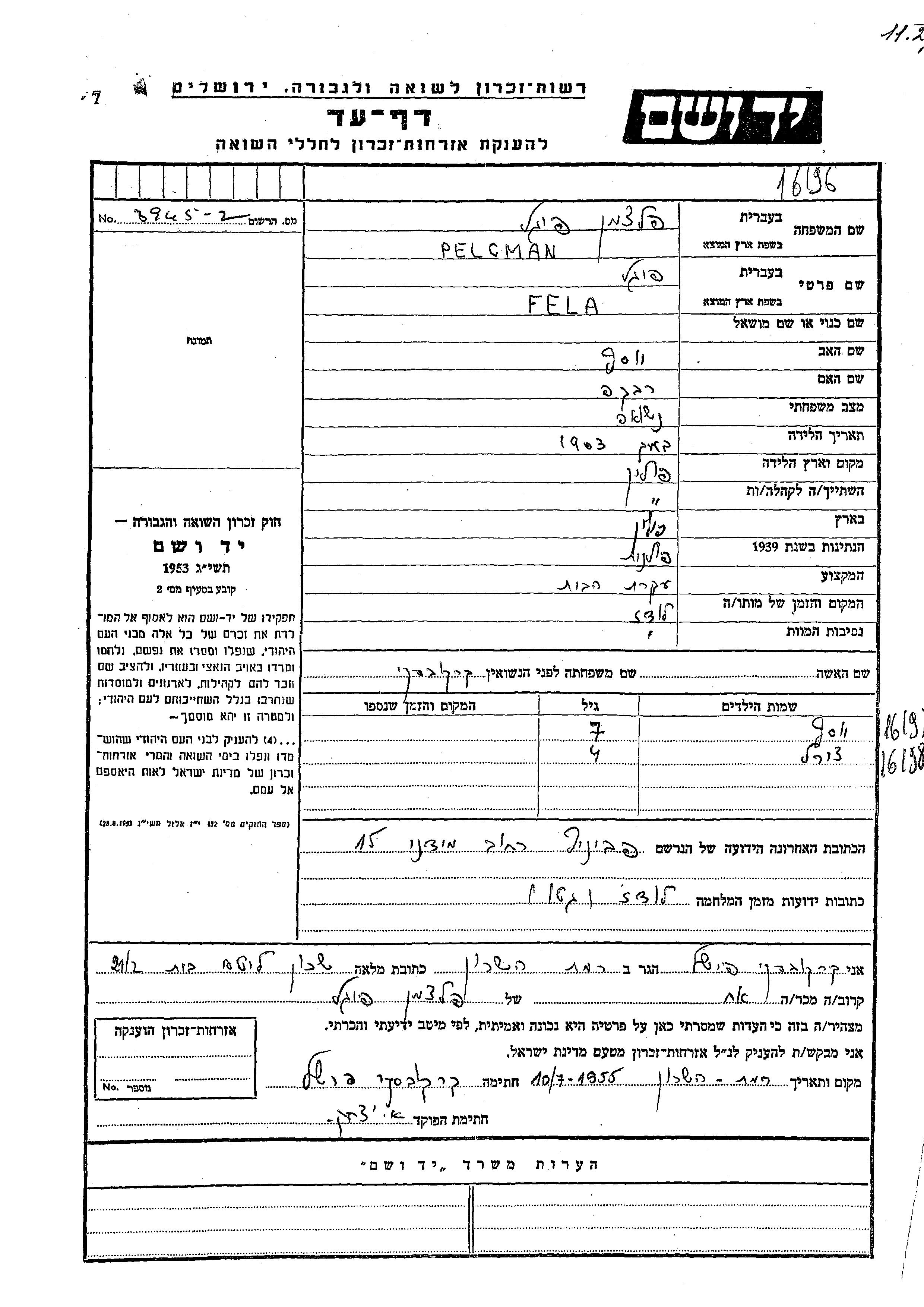 Pelcman Feldman Tzirel Polen Gedenkblatt