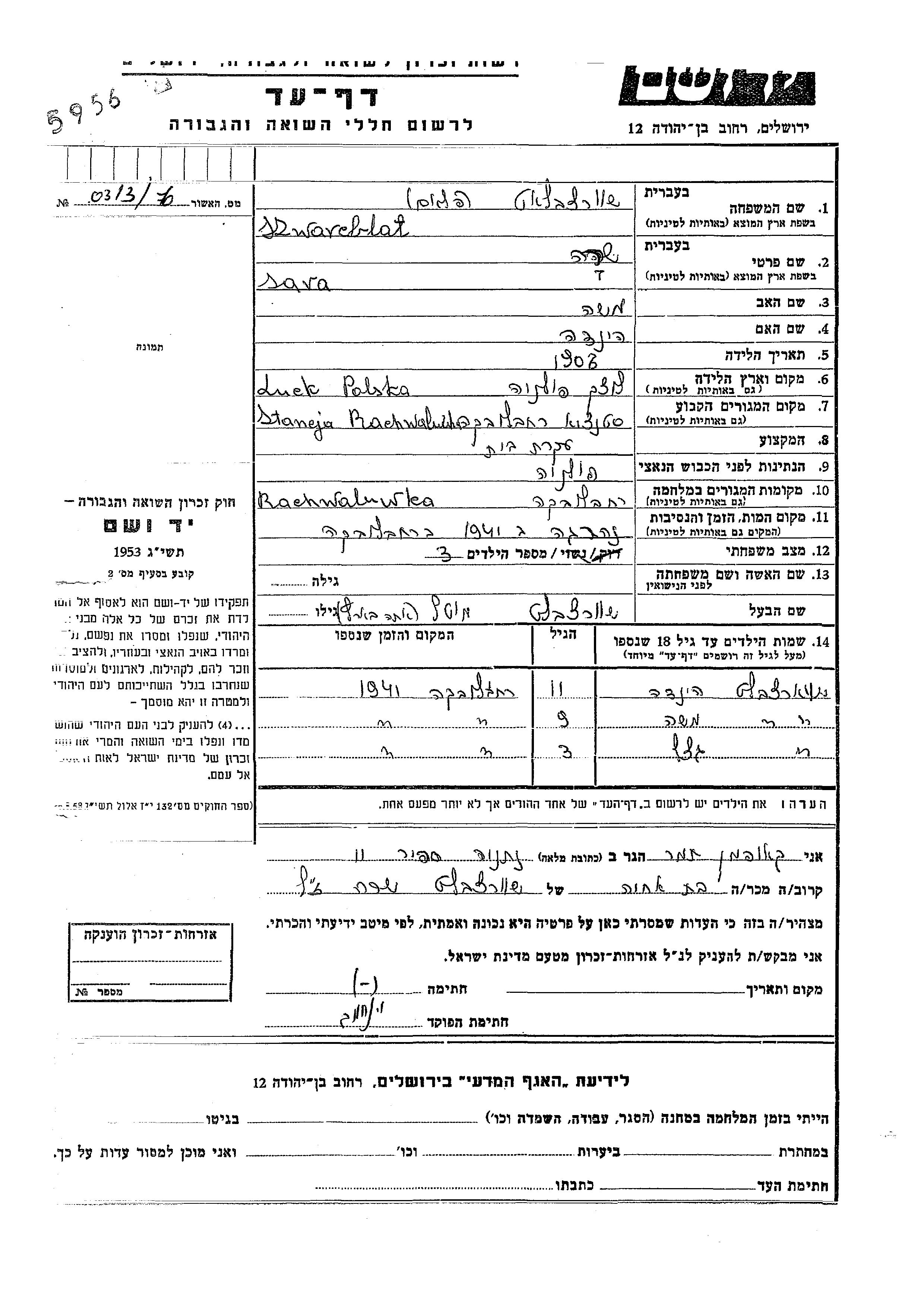 Hinda Szwarcblat wurde Sie war die Tochter von Motel und Sara, geb. Flaum. Sie war Kind. Vor dem Zweiten Weltkrieg lebte sie in Rachwalowka, Polen. Während des Krieges war sie in Rachwalowka, Polen.
