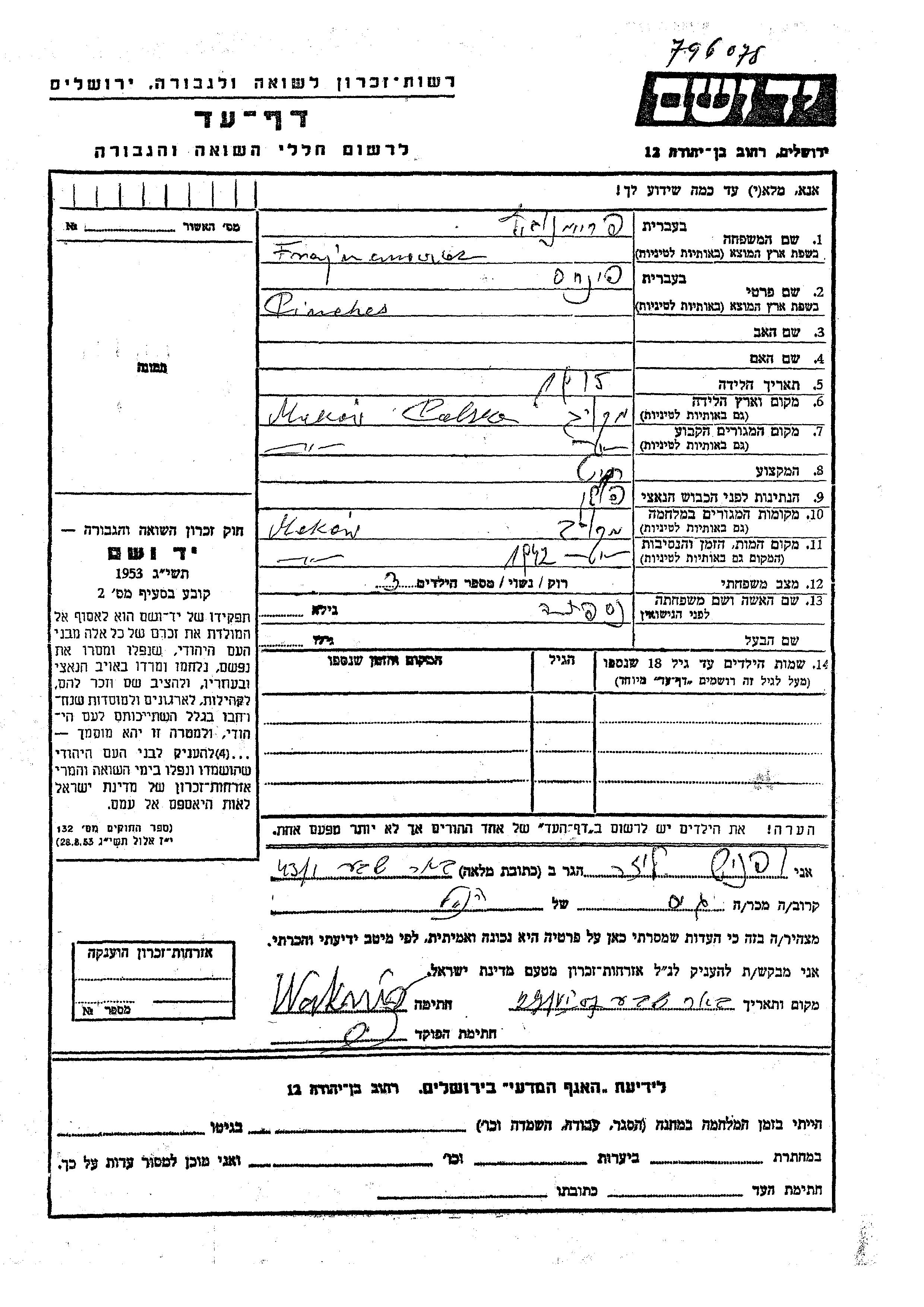 Pinches wurde in der Schoah ermordet. Todesort: Makov Mazovyetsk, Polen im Jahr 1942.