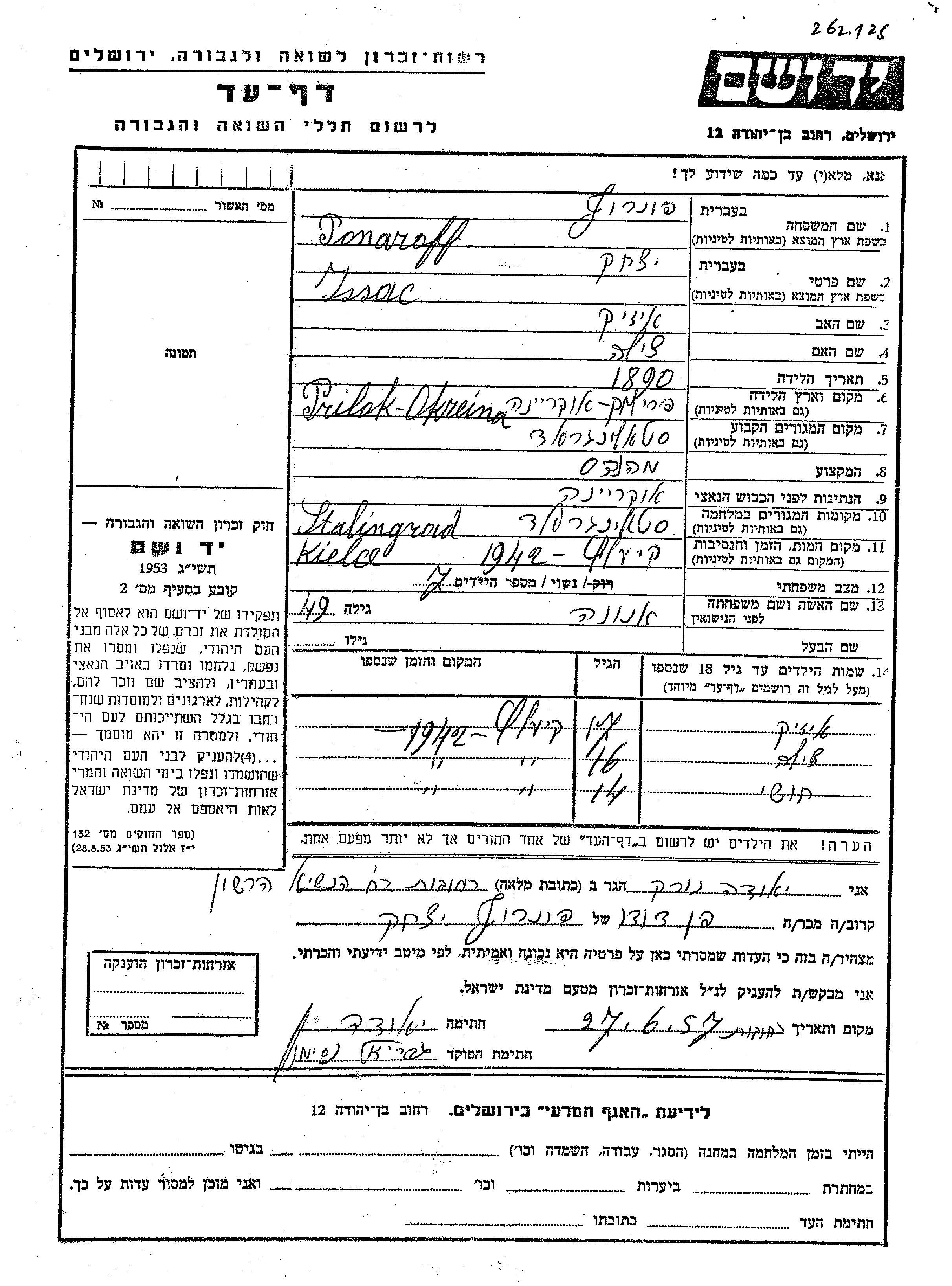 Aizik Ponaroff Fonaroff wurde Er war der Sohn von Issac und Ana. Er war Kind. Vor dem Zweiten Weltkrieg lebte er in Stalingrad, Russland (UdSSR). Während des Krieges war er in Stalingrad, Russland (UdSSR).