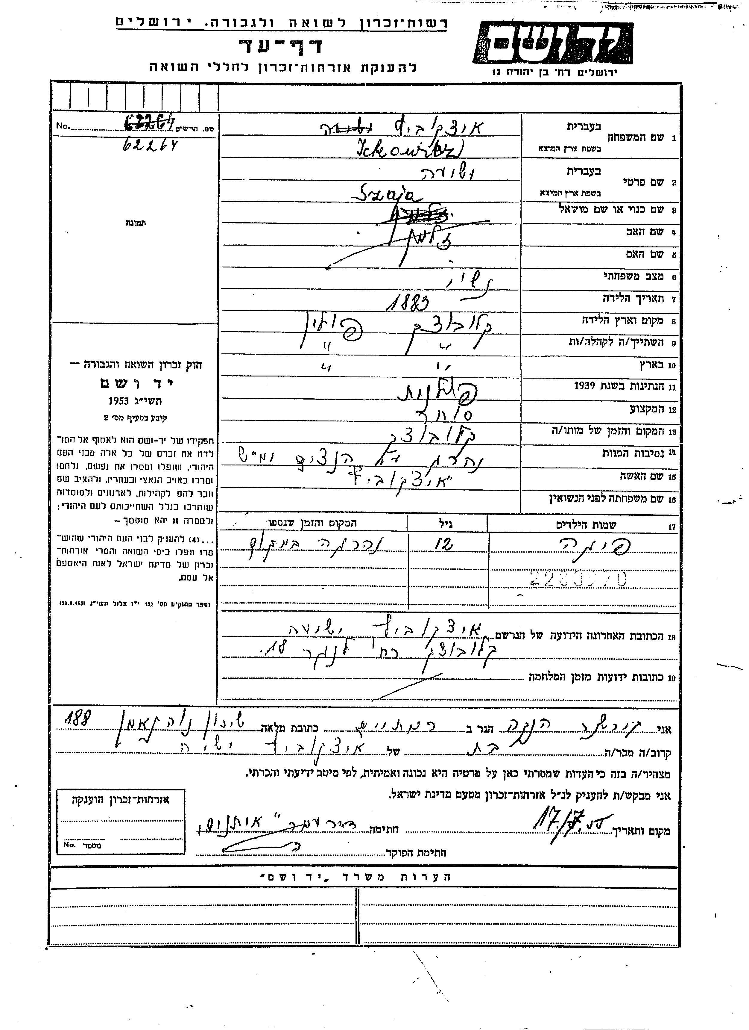 Ickovits Feiga Klobuck, Polen Gedenkblatt