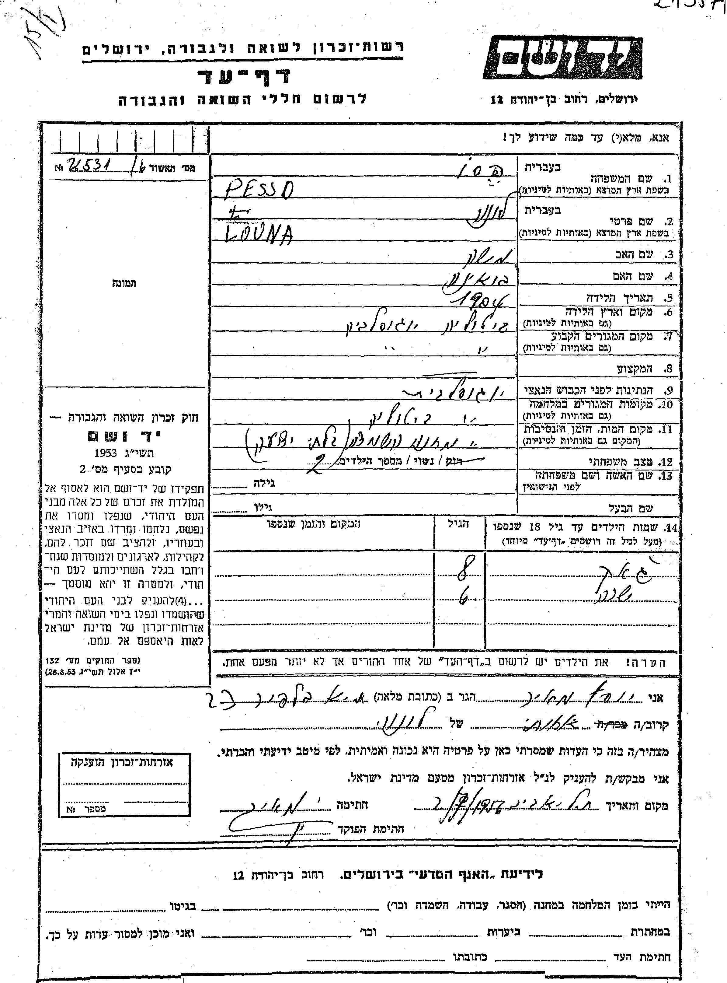 Sara Pesso wurde Sie war die Tochter von Louna. Sie war Kind. Vor dem Zweiten Weltkrieg lebte sie in Bitolja, Jugoslawien. Während des Krieges war sie in Bitolja, Jugoslawien.
