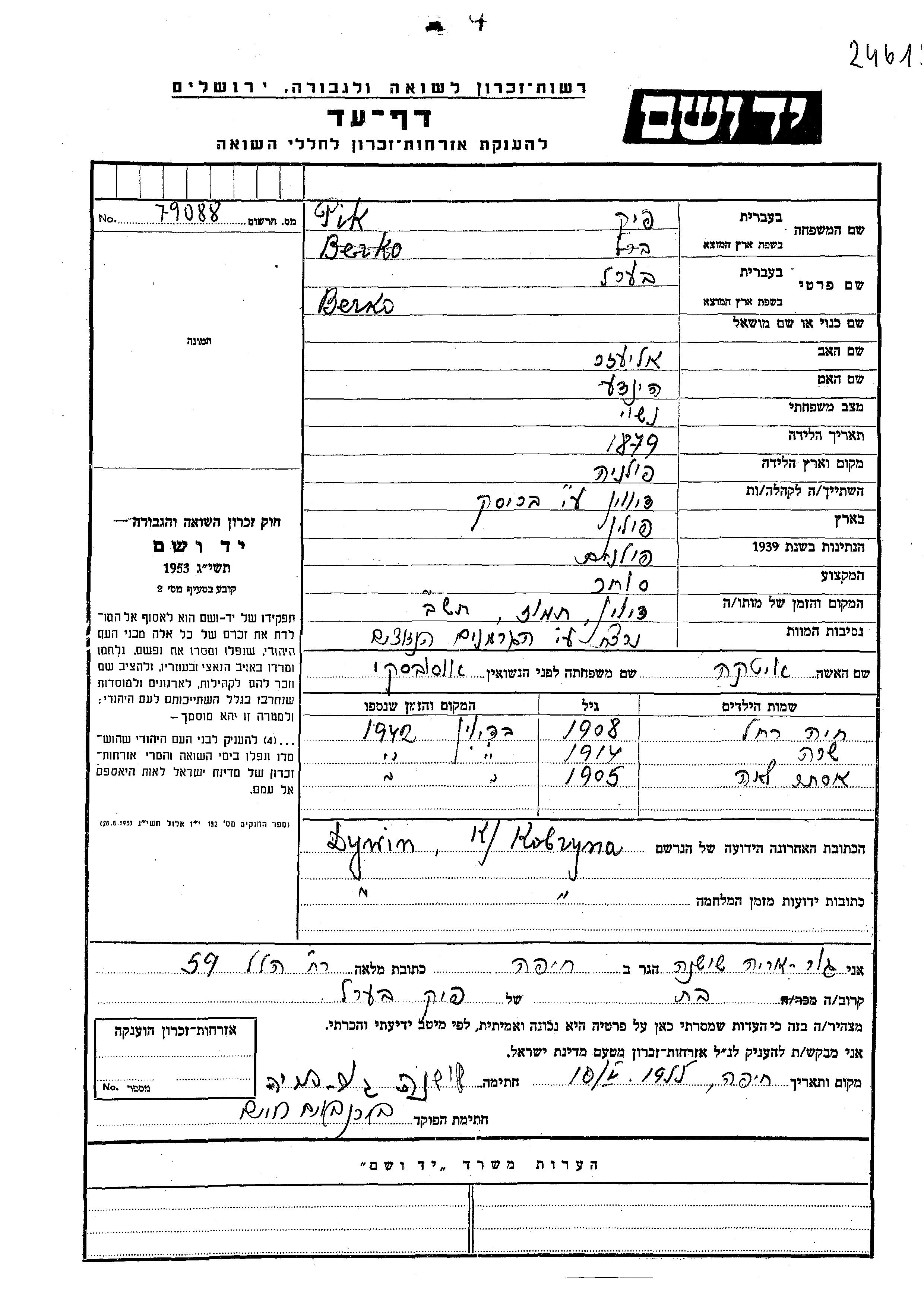 Ester Lea Pik wurde im Jahr 1905 geboren. Sie war die Tochter von Berko und Itka, geb. Osovski. Vor dem Zweiten Weltkrieg lebte sie in Dywin, Polen. Während des Krieges war sie in Dywin, Polen.