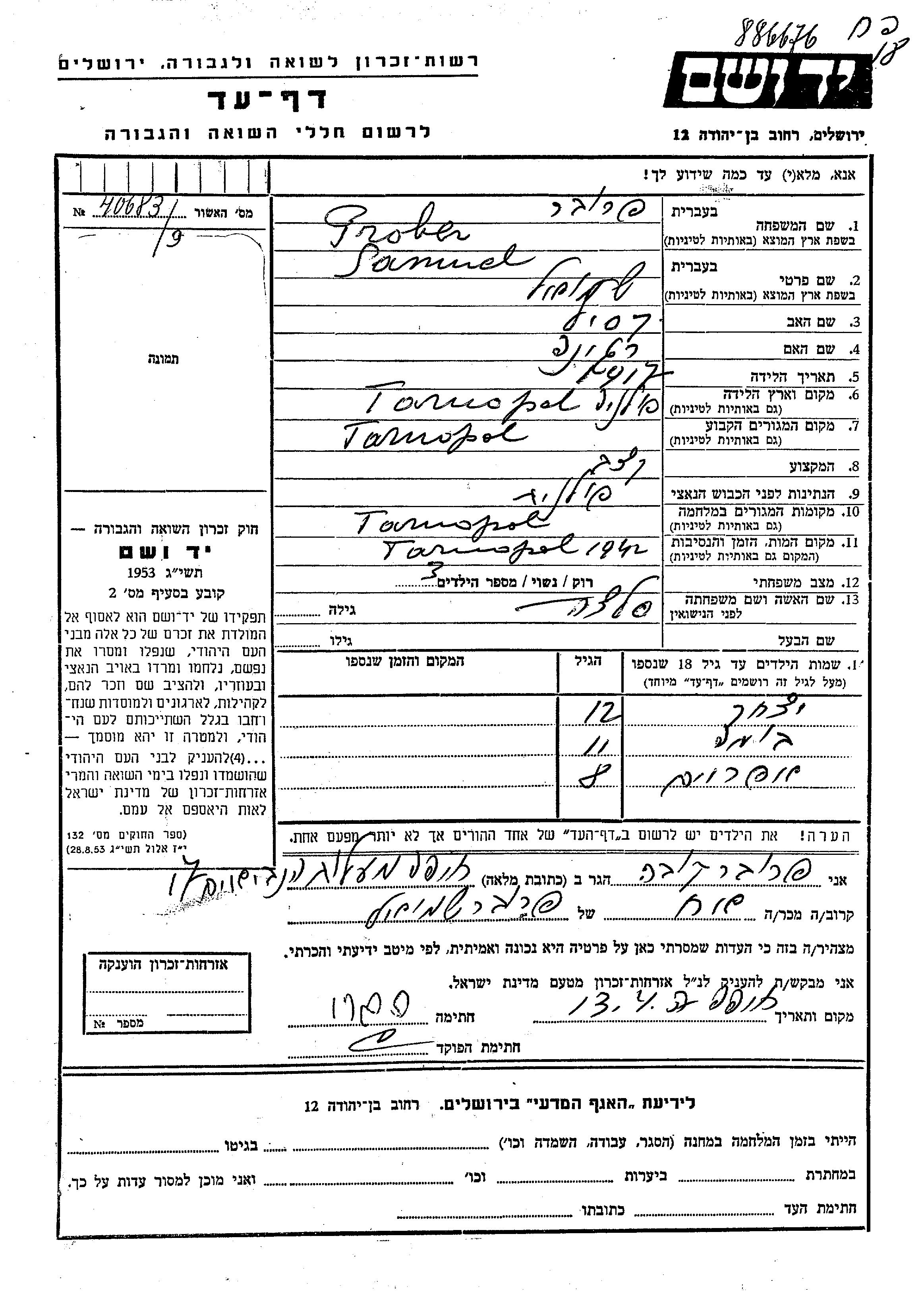 Bima Prober wurde Sie war die Tochter von Shmuel und Salcha. Sie war Kind. Vor dem Zweiten Weltkrieg lebte sie in Tarnopol, Polen. Während des Krieges war sie in Tarnopol, Polen.