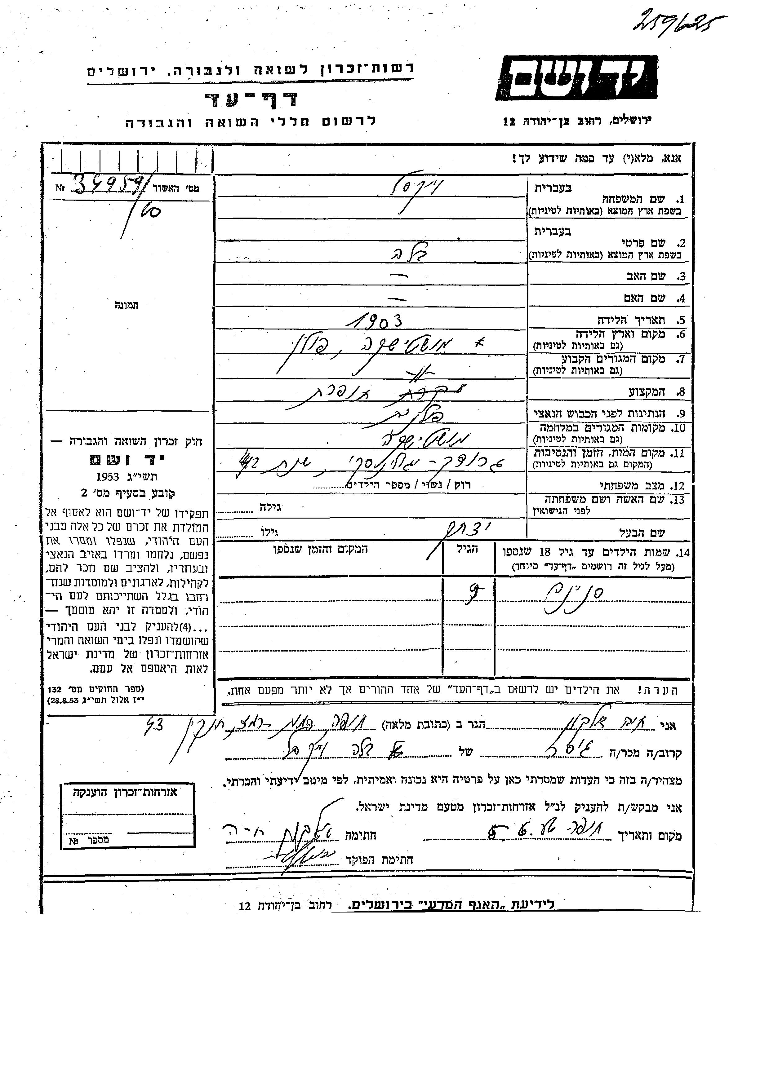 Suche nach einem Todesjahr im Zeitraum der Holocaust: 1933 bis 1945. Bitte wählen Sie 'Exakt' im Auswahlmenü, um nur nach einem einzelnen Jahr zu suchen, alternativ können Sie die flexibleren Optionen '+/- 2 Jahre' oder '+/- 5 Jahre' wählen.