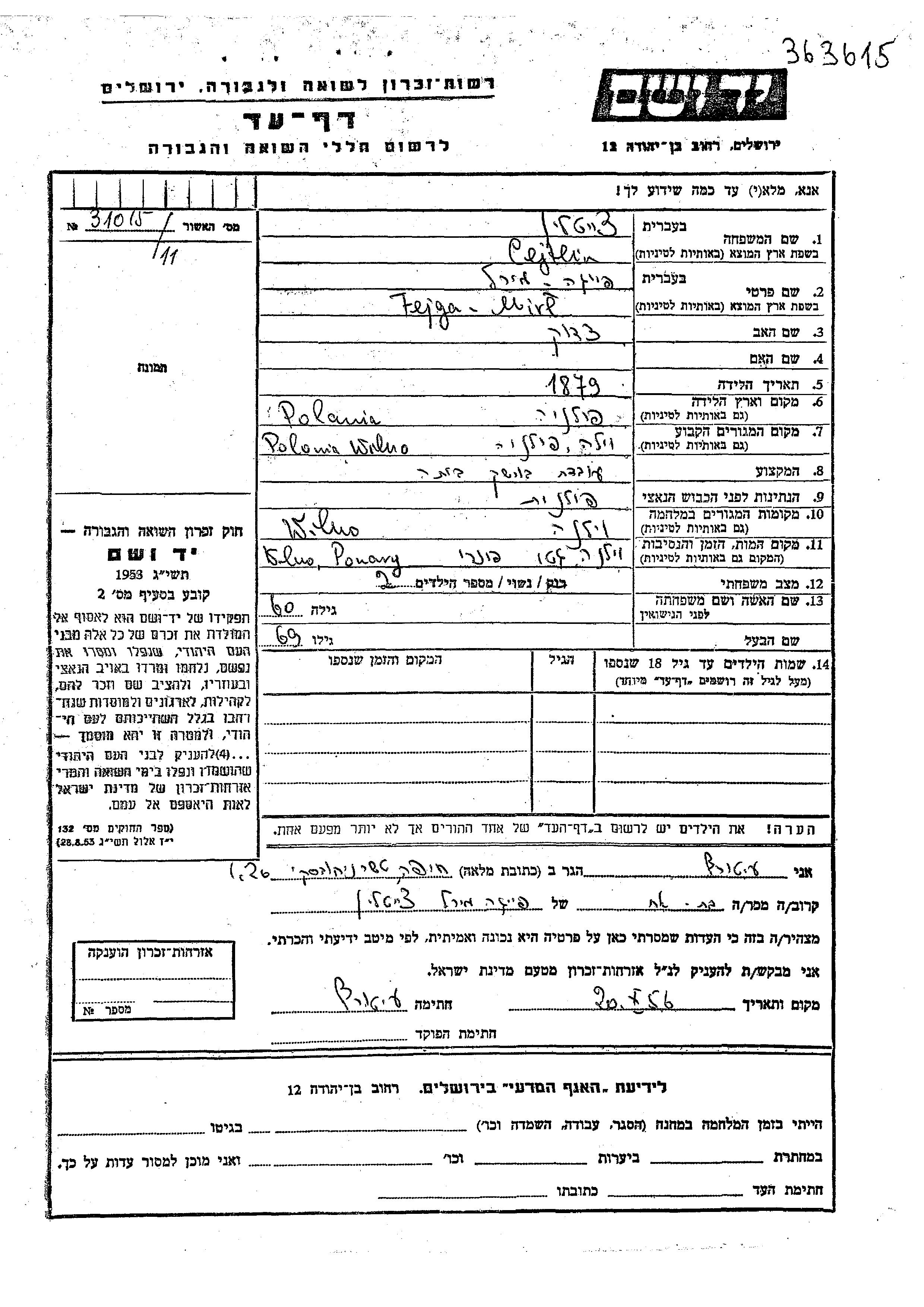 Fejga Mirl wurde in der Schoah ermordet. Todesort: Wilno, Polen.