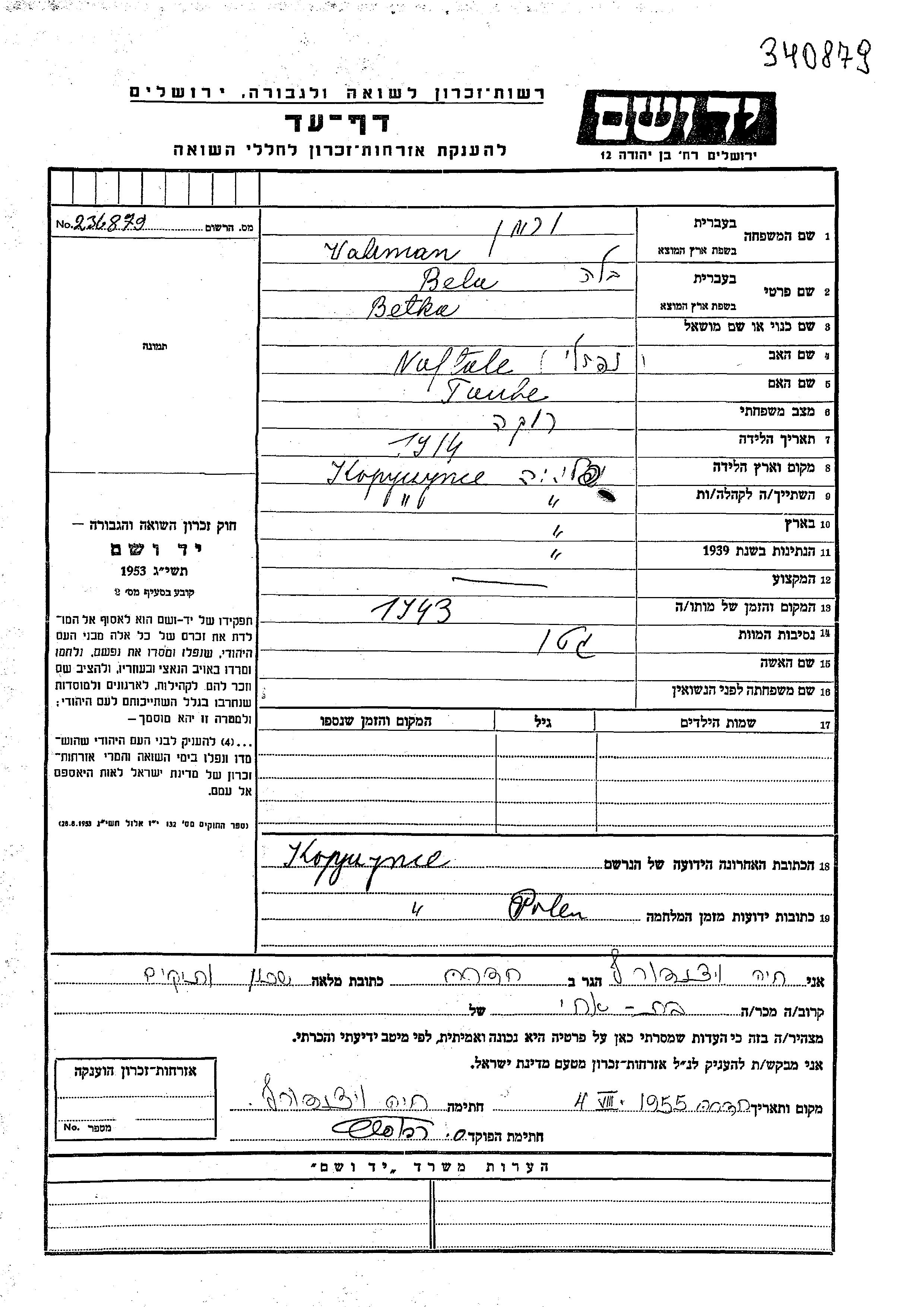 Bela wurde in der Schoah ermordet. Todesort: unbekannt im Jahr 1943.
