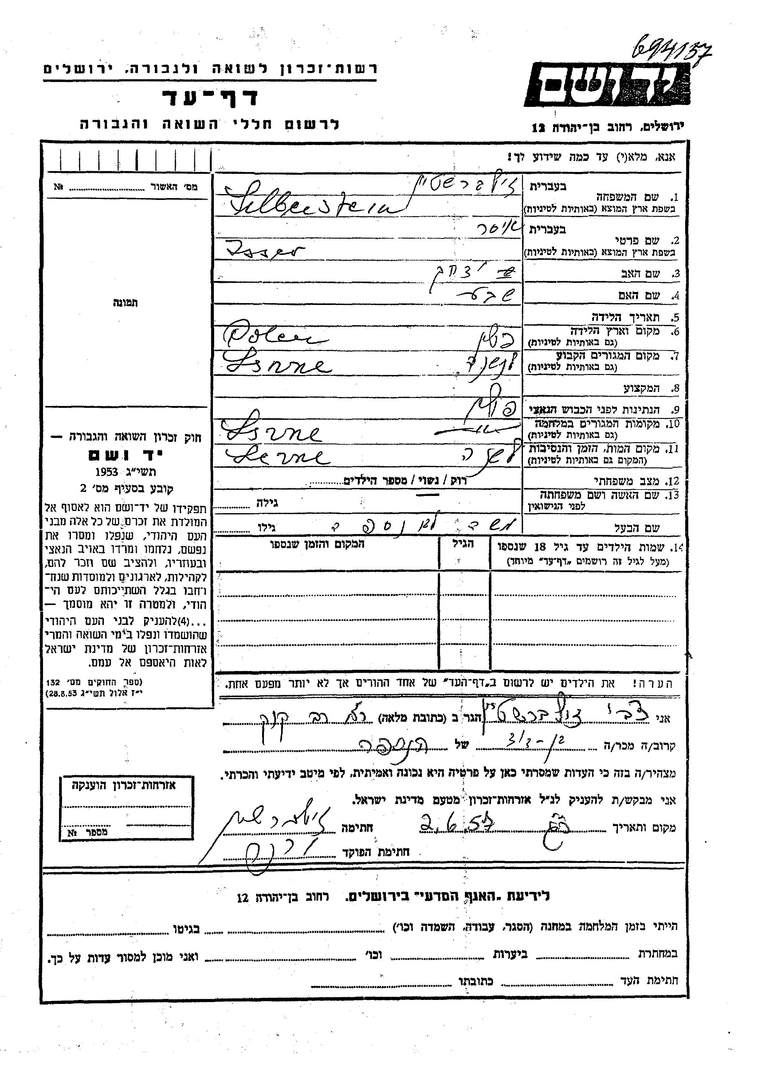 Isser Silberstein wurde in Polen geboren. Er war der Sohn von Yitzkhak und Sheva. Er war mit Masha Verheiratet. Vor dem Zweiten Weltkrieg lebte er in Leczna, Polen. Während des Krieges war er in Lezne, Polen.