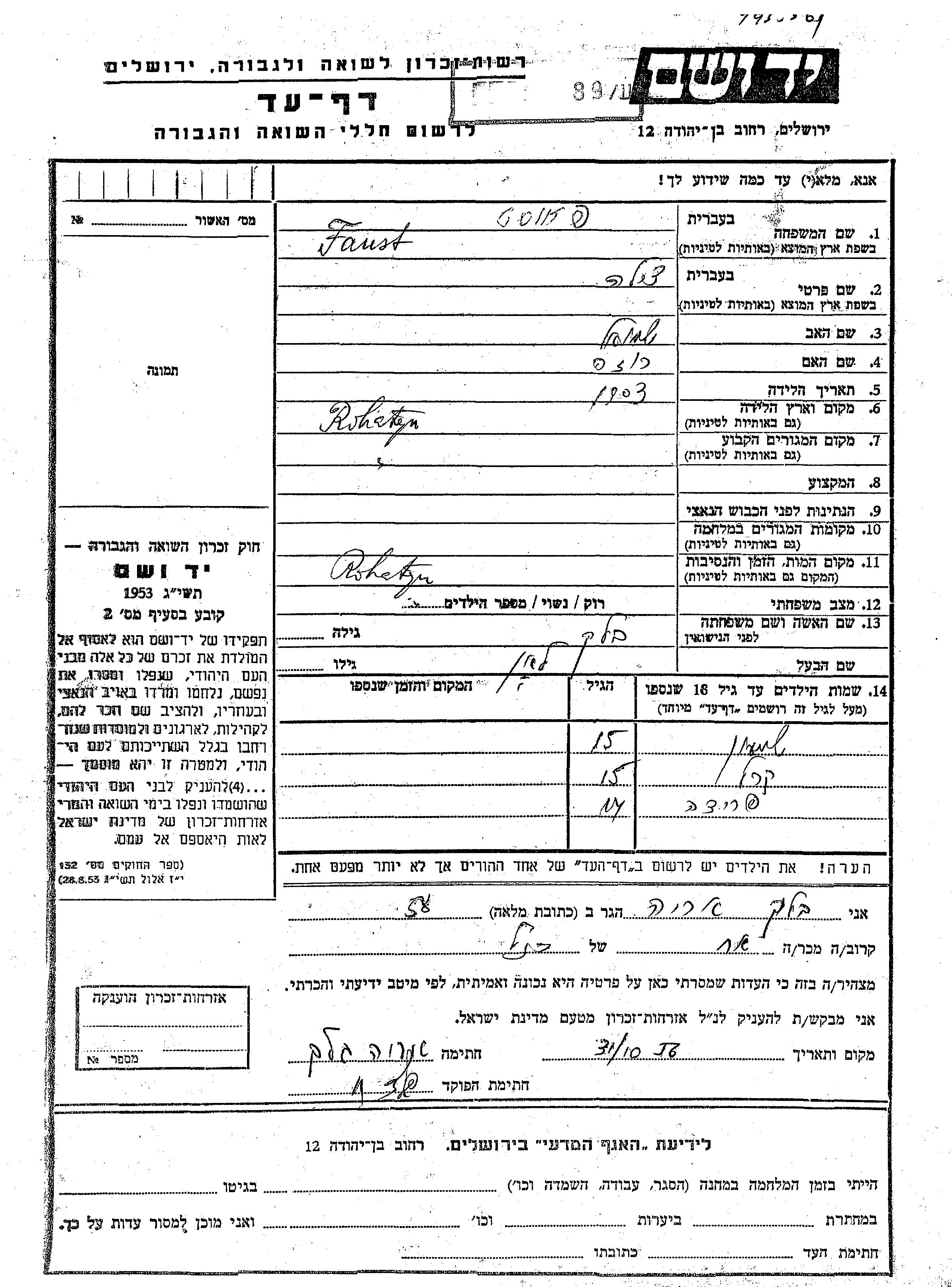 Shimon Faust wurde Er war der Sohn von Leon und Tzila, geb. Blak. Er war Kind.