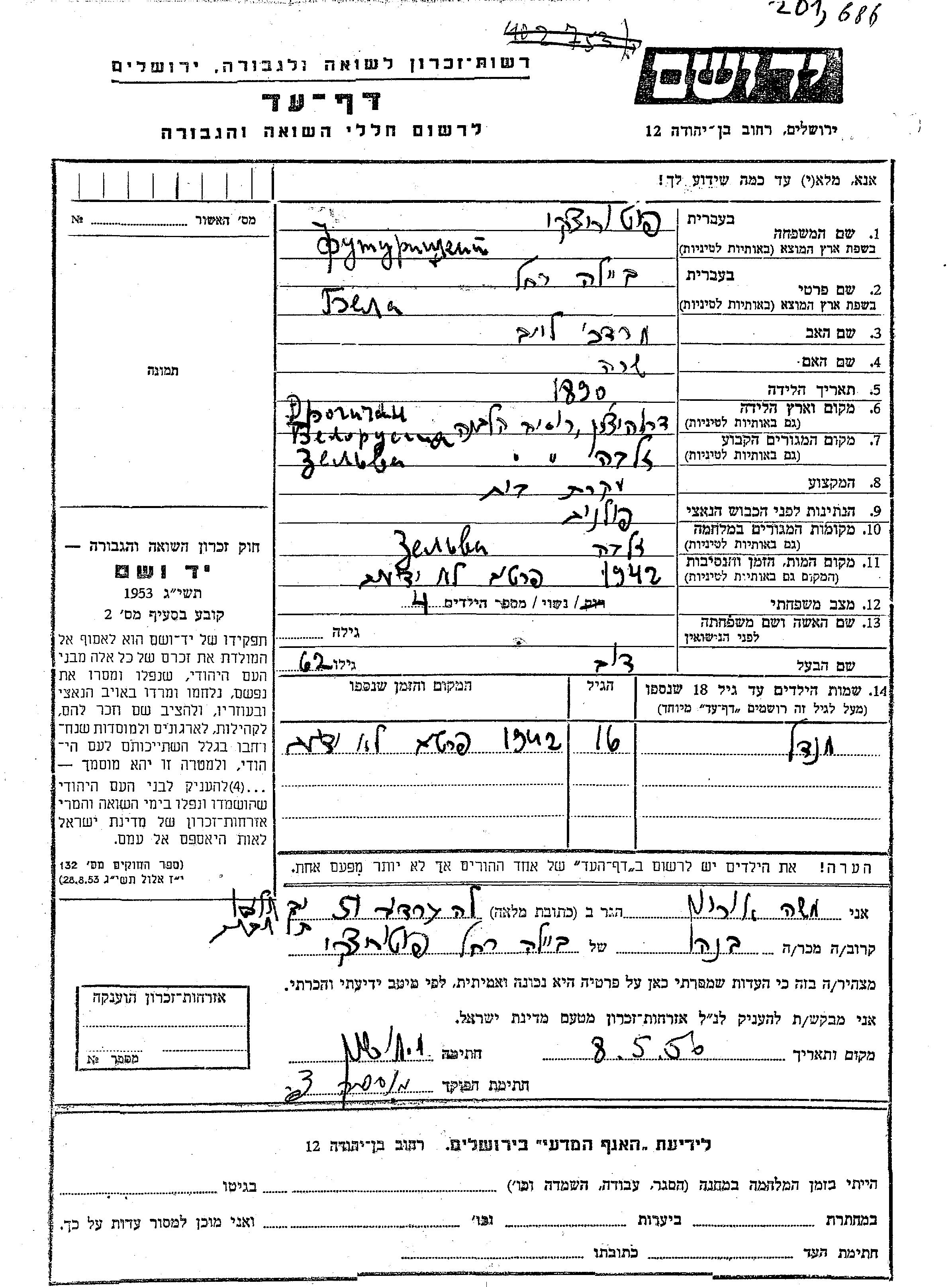 Yad Vashem - Gedenkblätter Sammlung
