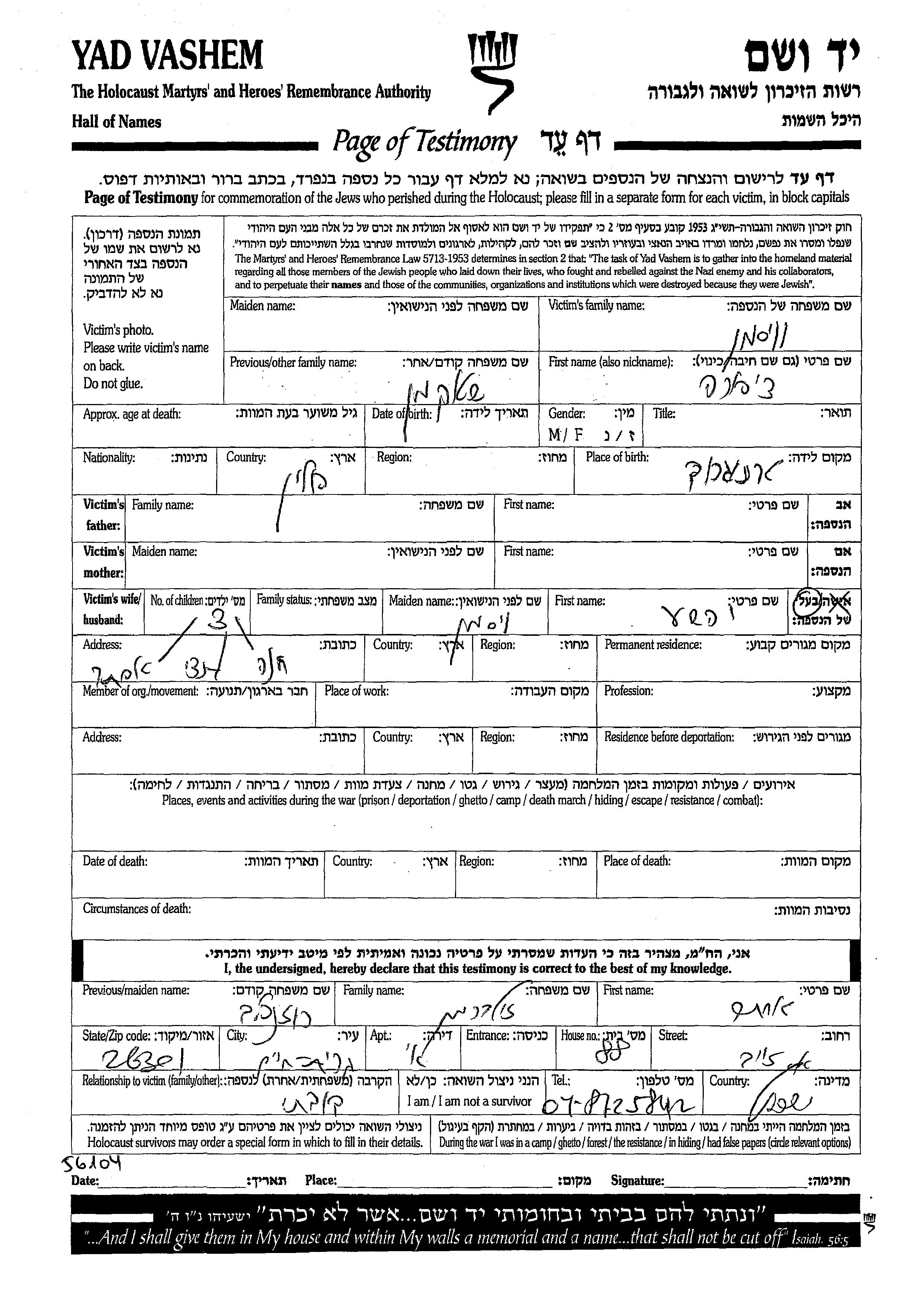 Veisman Shtokman Ester unbekannter Ort, Gedenkblatt