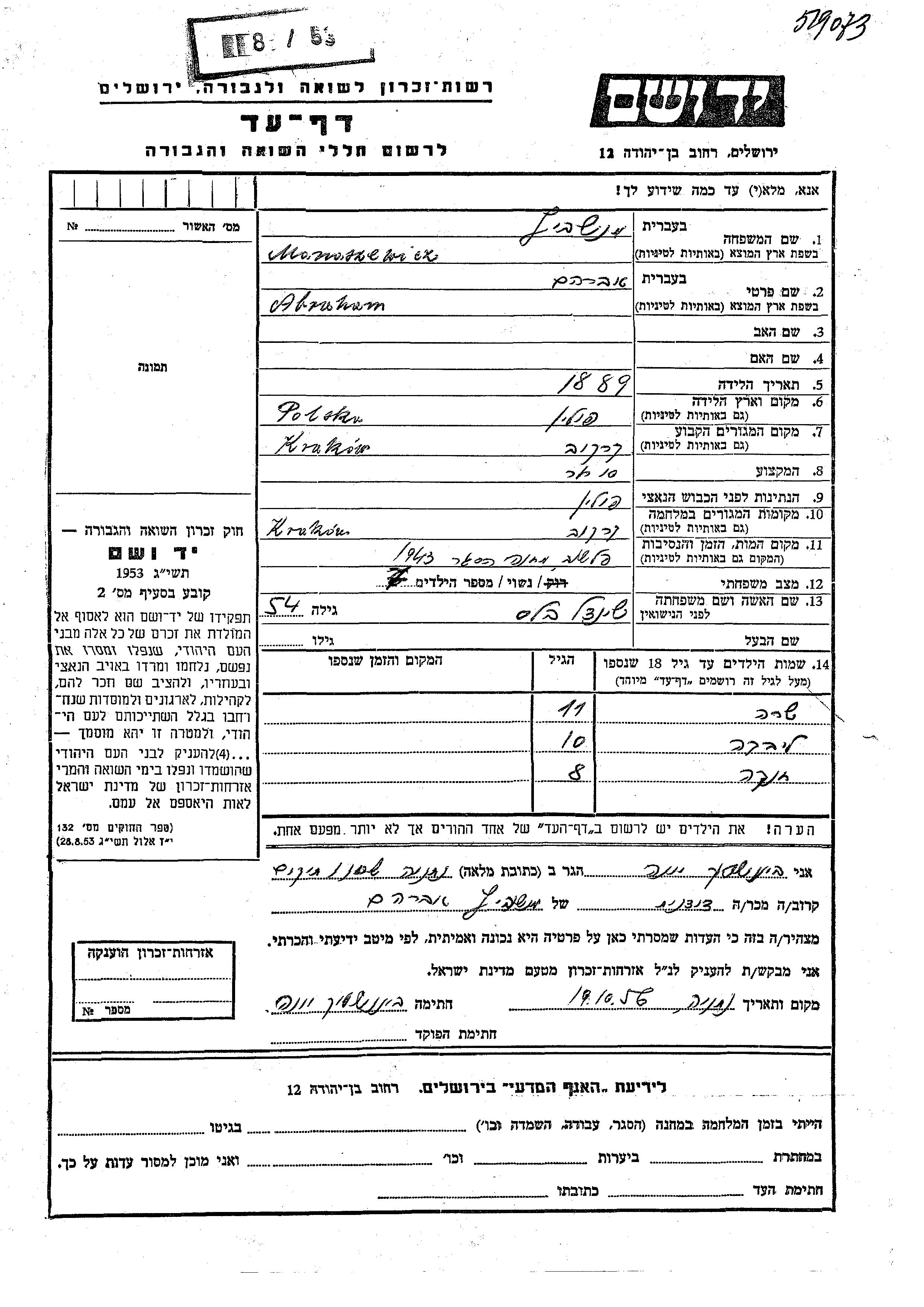 Libka Manaszewicz wurde Er/sie war der/ die Sohn/Tochter von Abraham und Sheindl, geb. Blas. Er/Sie war Kind. Vor dem Zweiten Weltkrieg er/sie in Krakow, Polen. Während des Krieges war er/sie in Krakow, Polen.