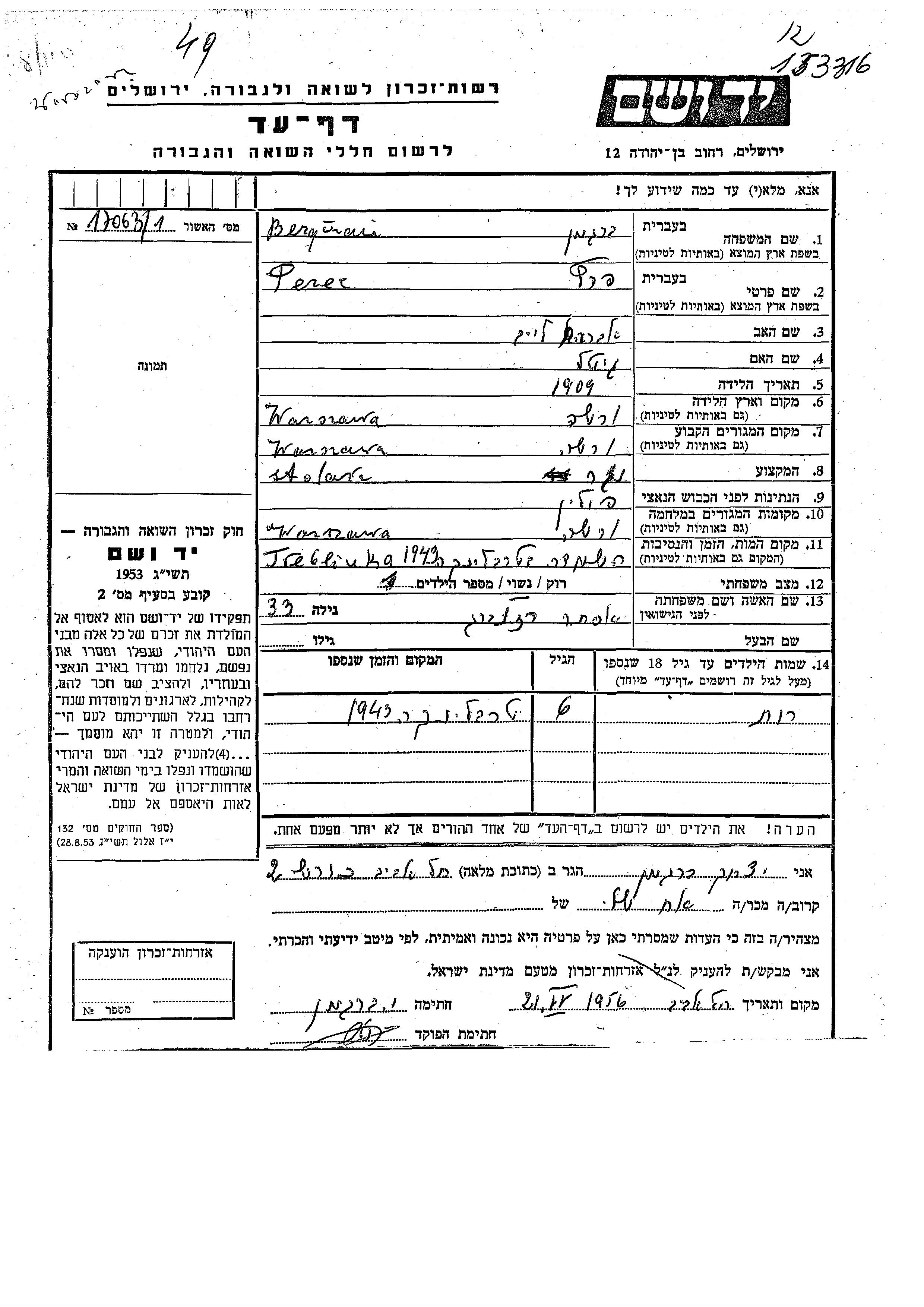 Rut Bergman wurde Sie war die Tochter von Perec und Ester, geb. Rozenberg. Sie war Kind. Vor dem Zweiten Weltkrieg lebte sie in Warsaw, Polen. Während des Krieges war sie in Warsaw, Polen.