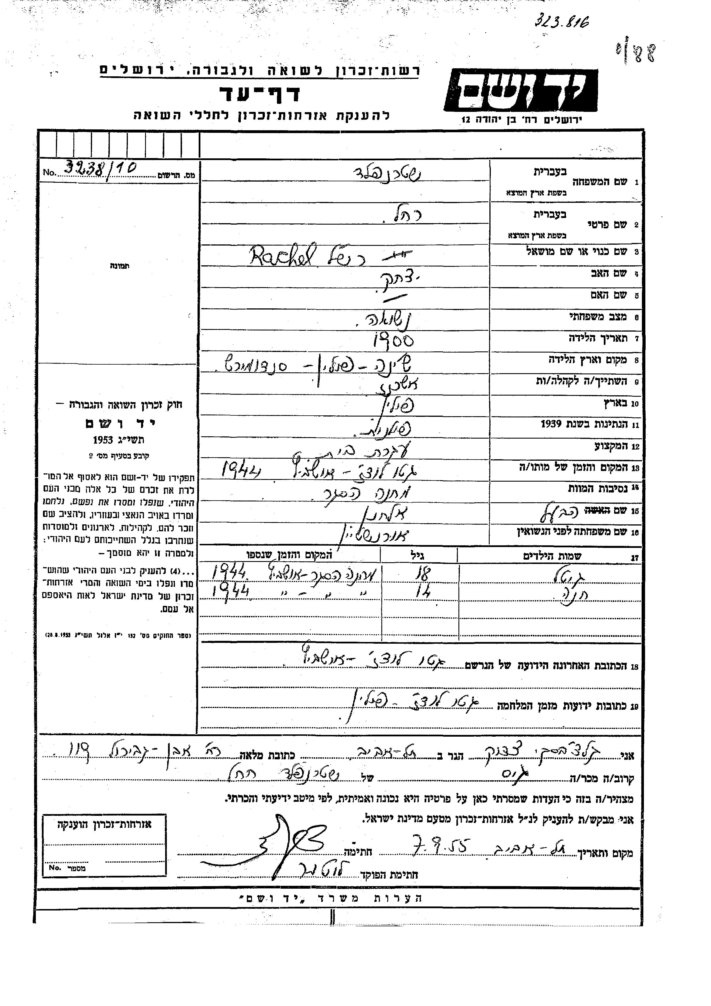 Khana Shternfeld wurde Sie war die Tochter von Elkhanan und Rachel, geb. Orenshtein. Sie war Kind. Vor dem Zweiten Weltkrieg lebte sie in Polen. Während des Krieges war sie in Lodz, Polen.