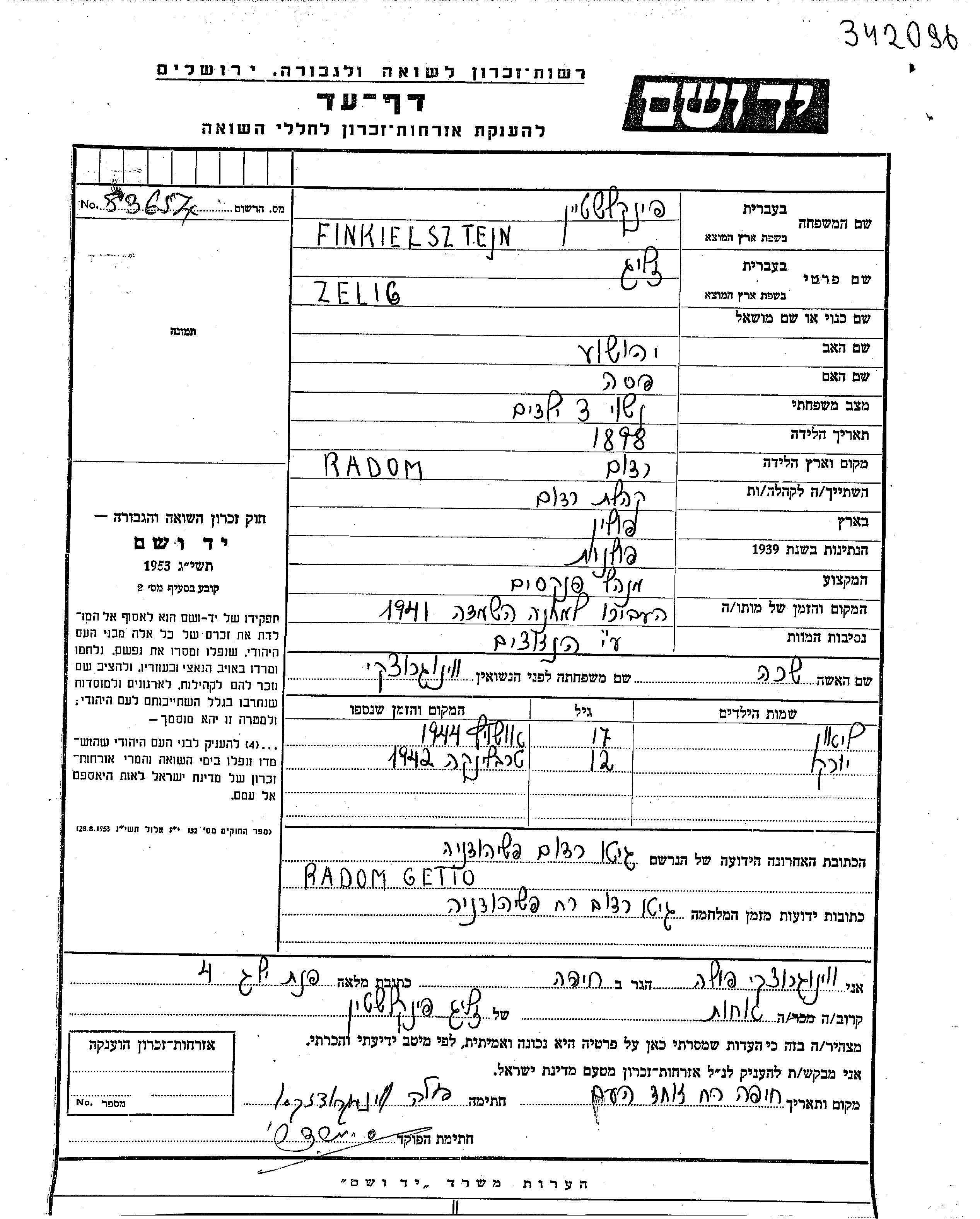 Lion Finkielsztejn wurde Er war der Sohn von Zelig und Sara, geb. Vinogradski. Er war Kind. Vor dem Zweiten Weltkrieg lebte er in Radom, Polen. Während des Krieges war er in Radom, Polen.
