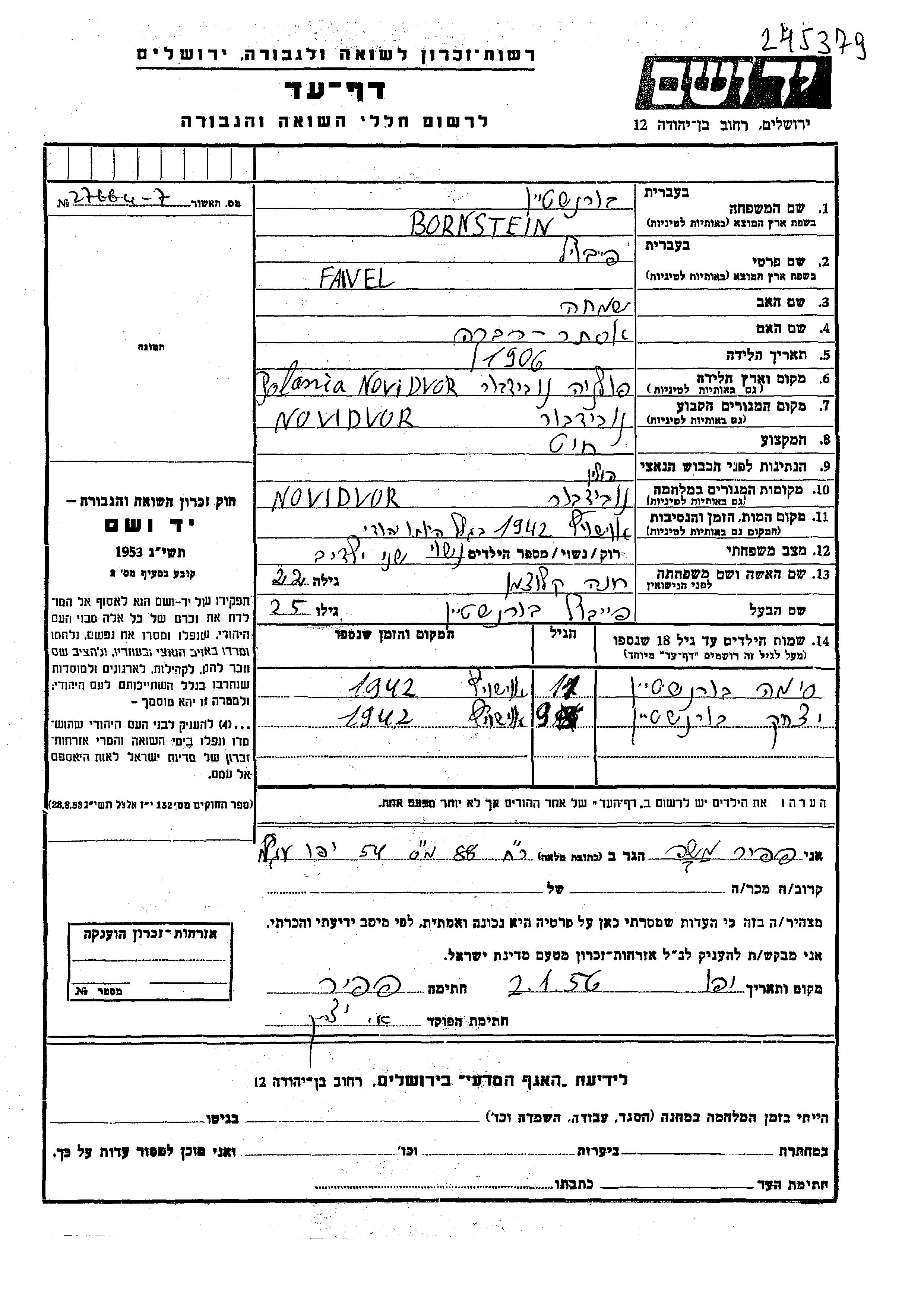 Yitzkhak Bornstein wurde Er war der Sohn von Faivel und Khana, geb. Klotzman. Er war Kind. Vor dem Zweiten Weltkrieg lebte er in Nowy Dwor Mazowiecki, Polen. Während des Krieges war er in Nowy Dwor Mazowiecki, Polen.