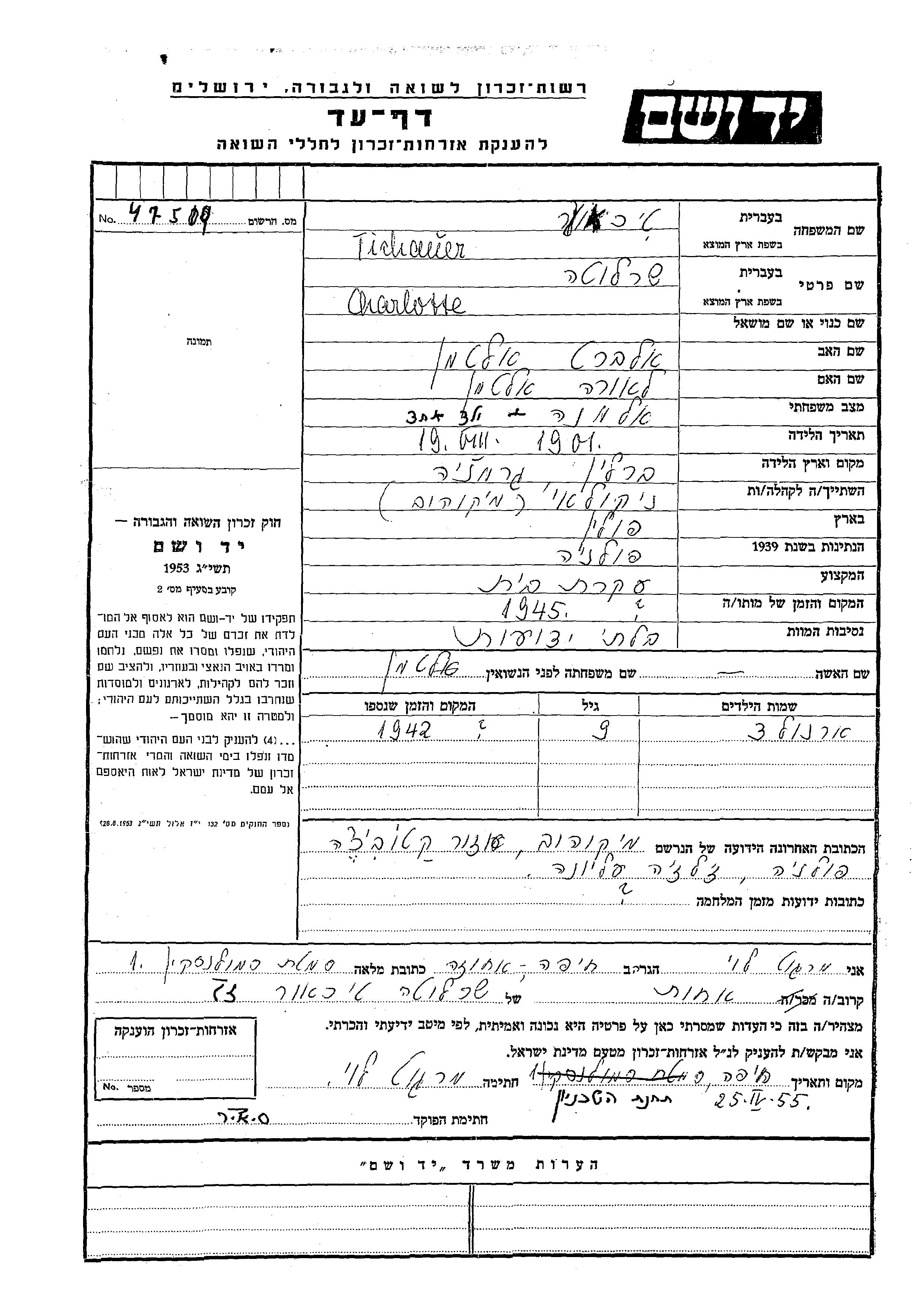 Arnold Tichauer wurde Er war der Sohn von Charlotte, geb. Altman. Er war Kind. Vor dem Zweiten Weltkrieg lebte er in Nikolai, Polen.