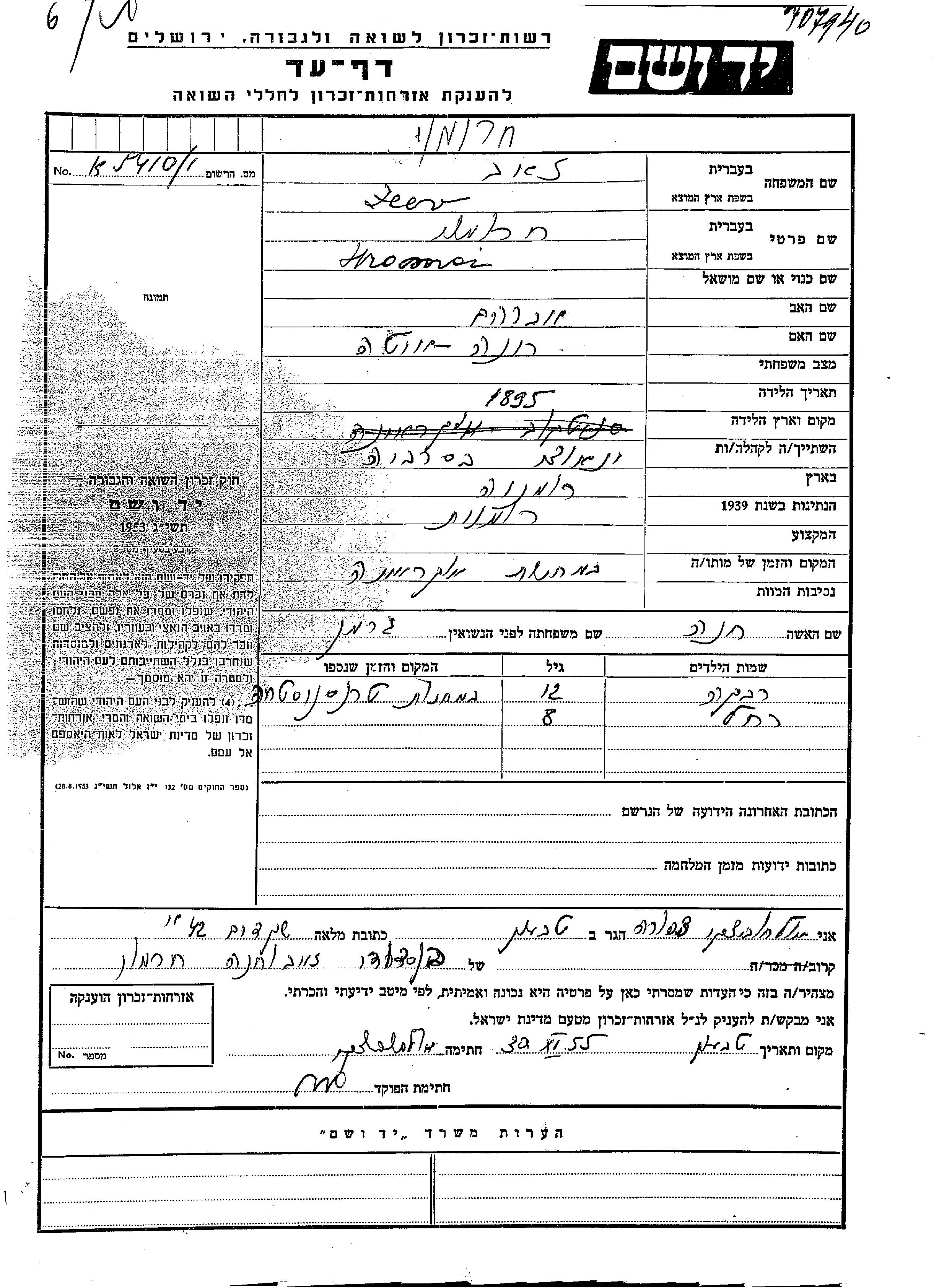 Rivka Hromoi wurde Sie war die Tochter von Zeev und Khana, geb. German. Sie war Kind.