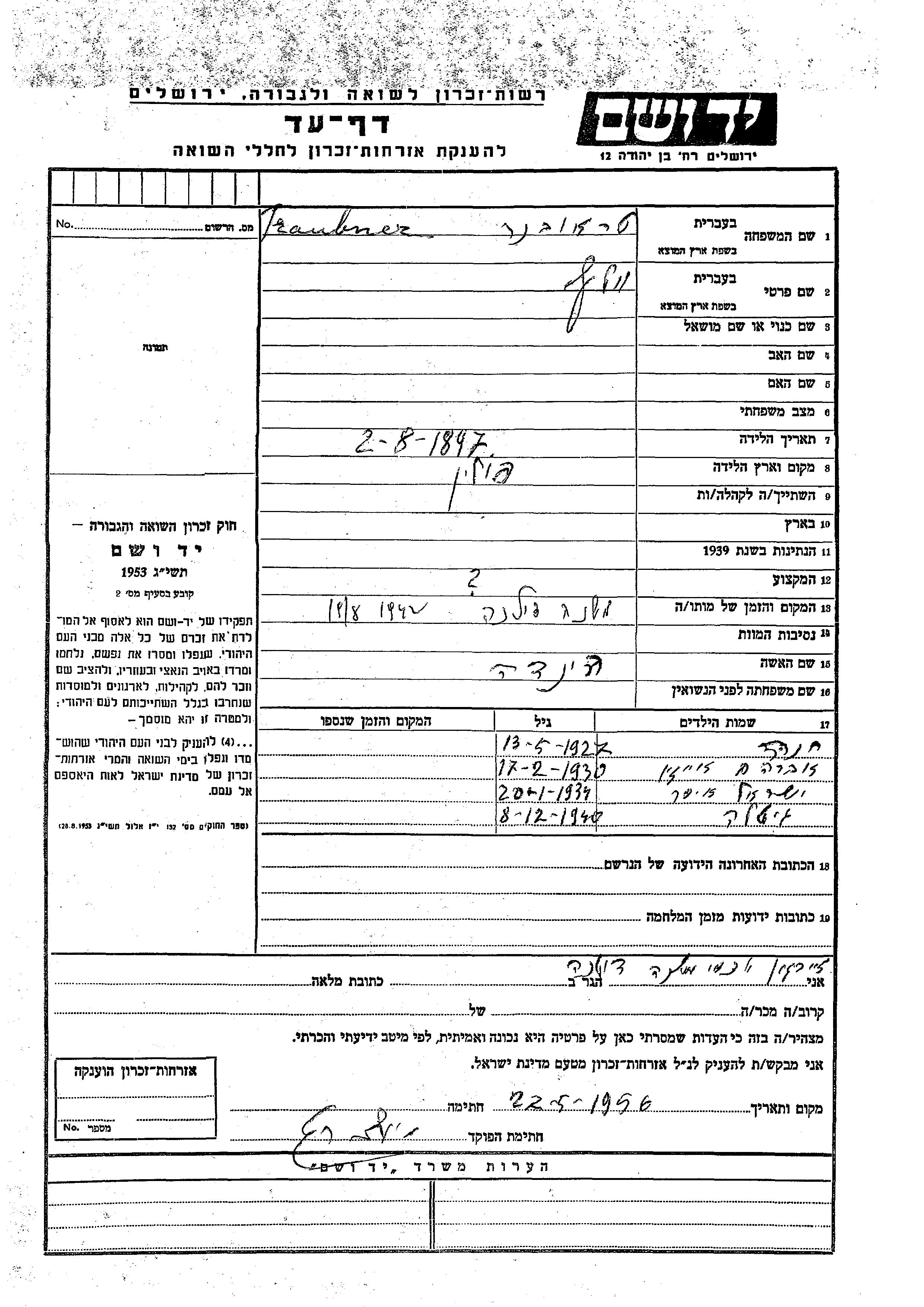 Khana Traubner wurde im Jahr 1927 geboren. Sie war die Tochter von Volf und Hinda. Sie war Kind.