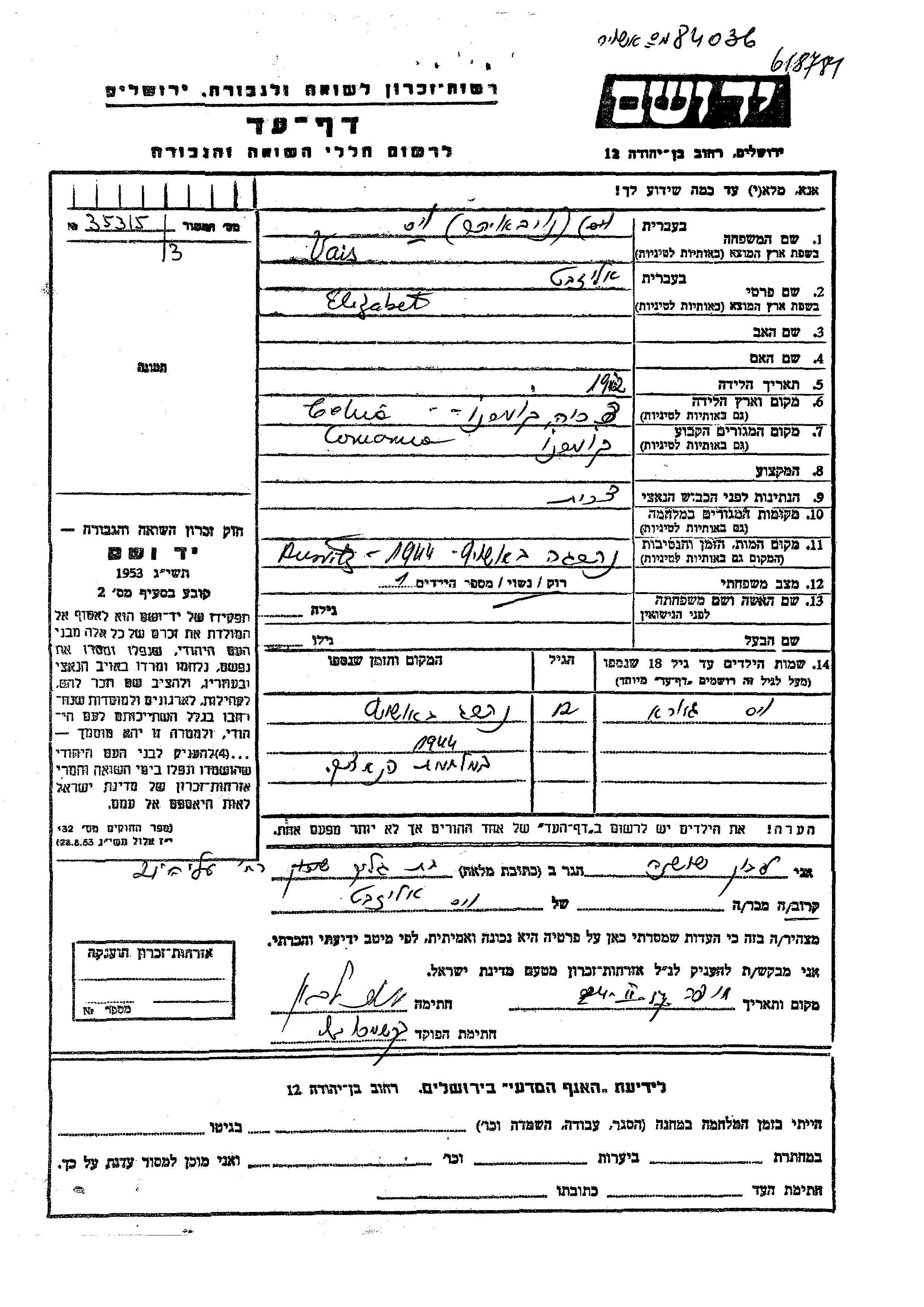 Suche nach einem Todesjahr im Zeitraum der Holocaust: 1933 bis 1945. Bitte wählen Sie 'Exakt' im Auswahlmenü, um nur nach einem einzelnen Jahr zu suchen, alternativ können Sie die flexibleren Optionen '+/- 2 Jahre' oder '+/- 5 Jahre' wählen.