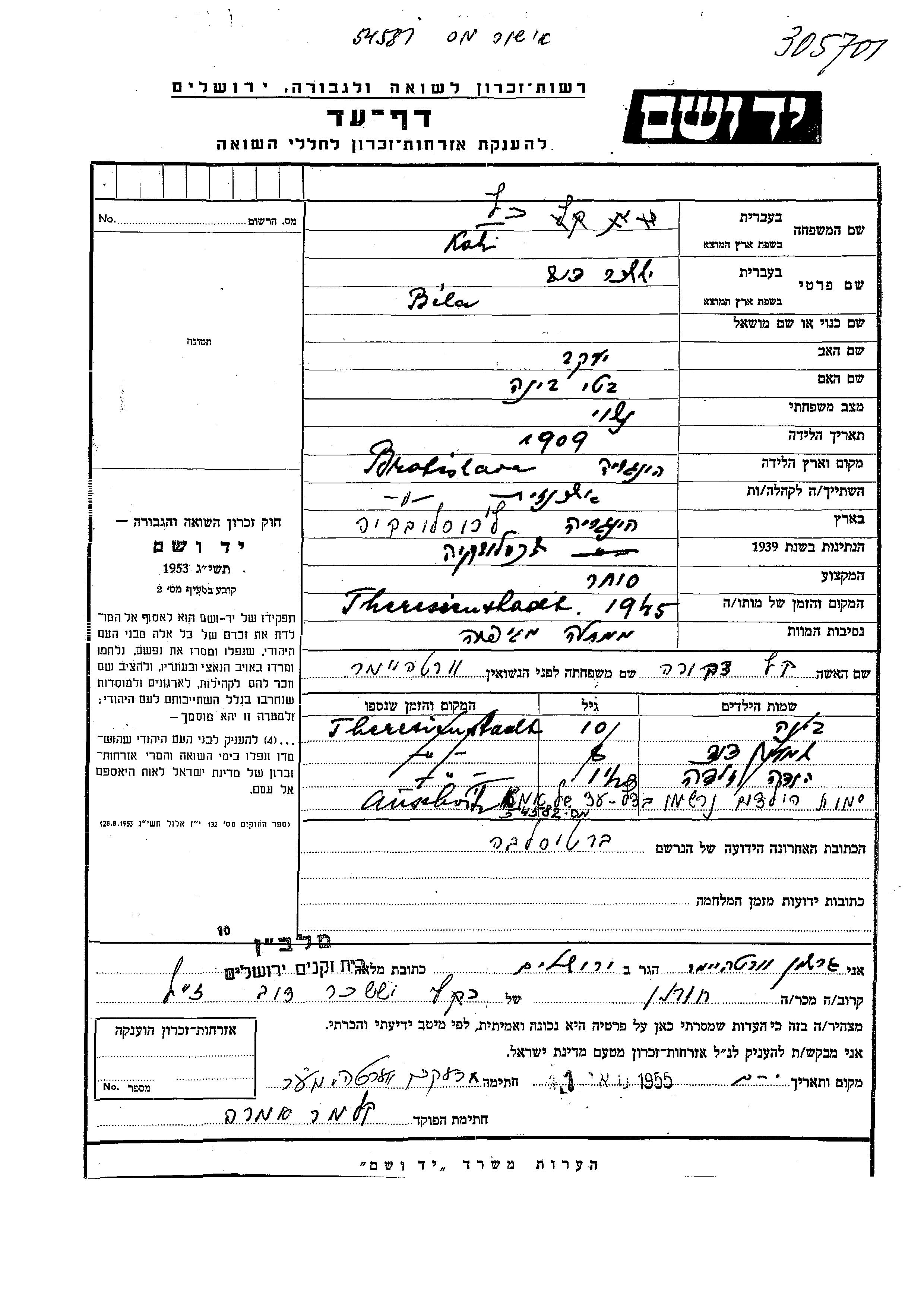 Yad Vashem - Gedenkblätter Sammlung