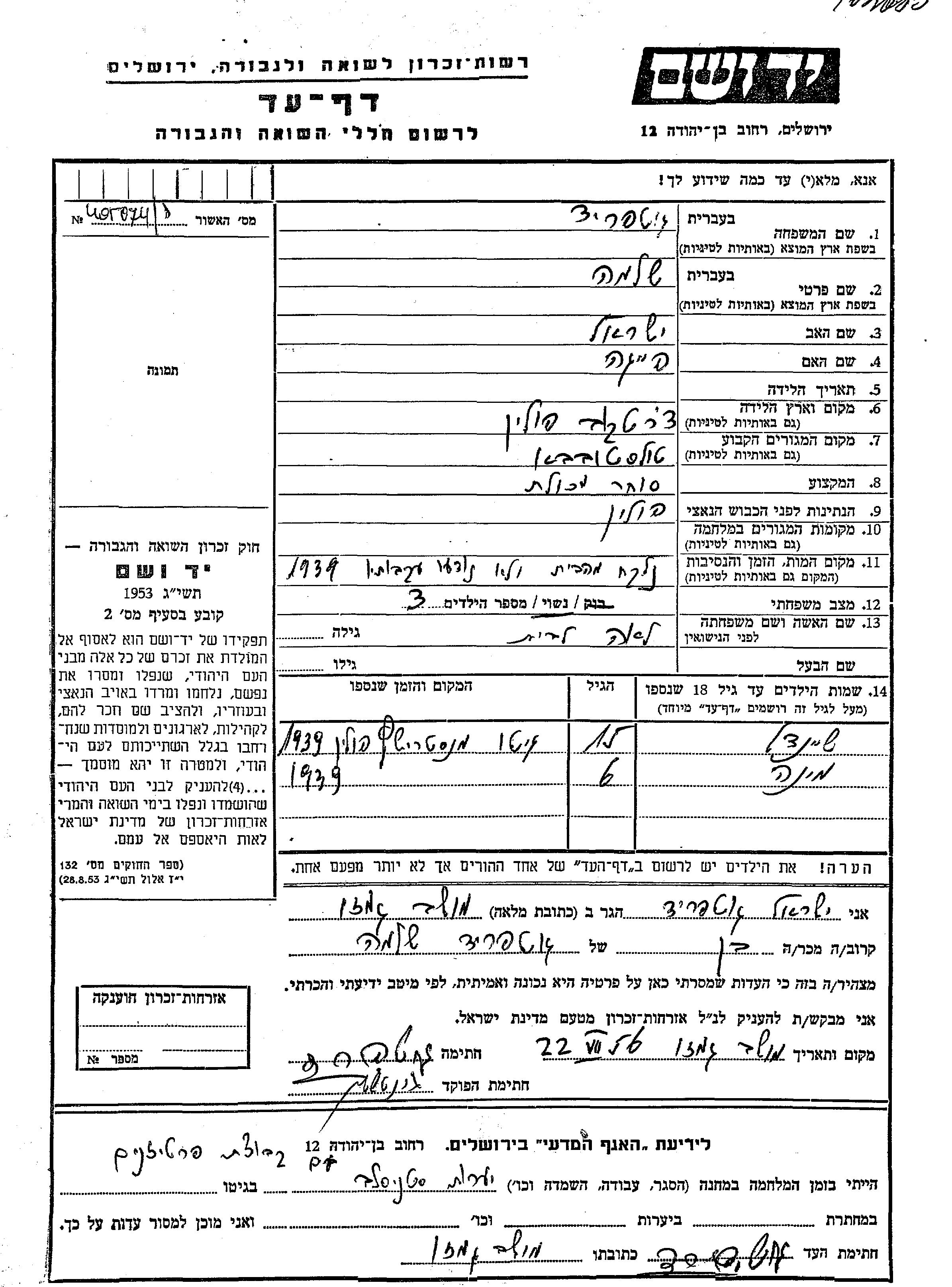 Yad Vashem - Gedenkblätter Sammlung