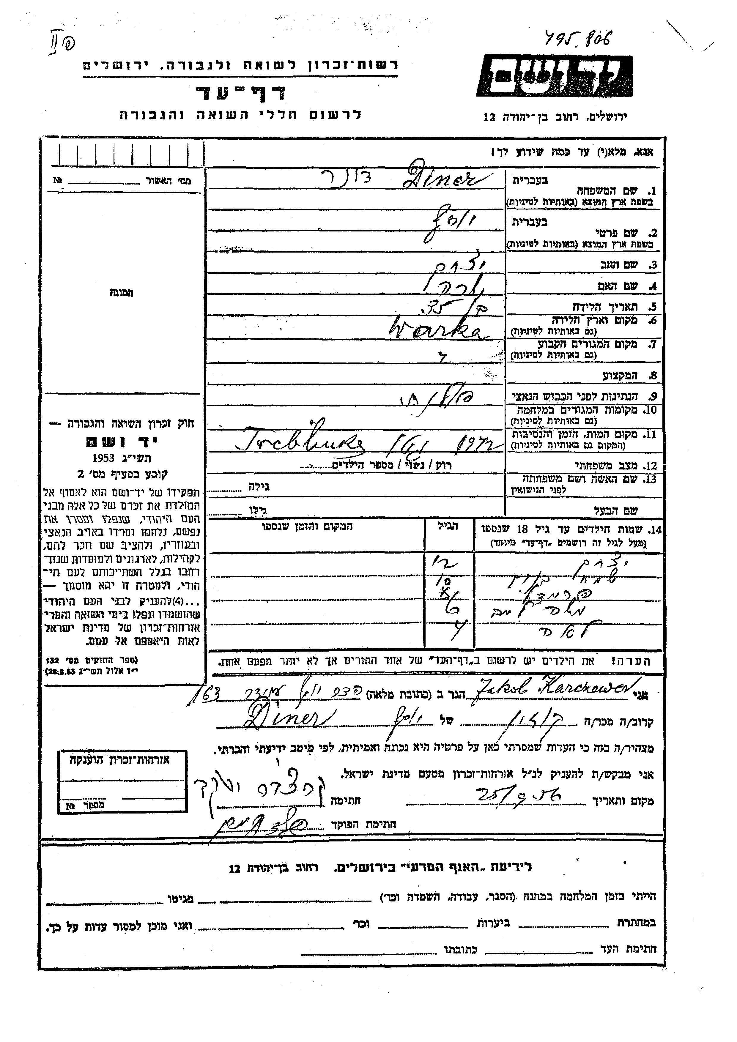 Lea Diner wurde Er/sie war der/ die Sohn/Tochter von Yosef. Er/Sie war Kind. Vor dem Zweiten Weltkrieg er/sie in Warka, Polen.