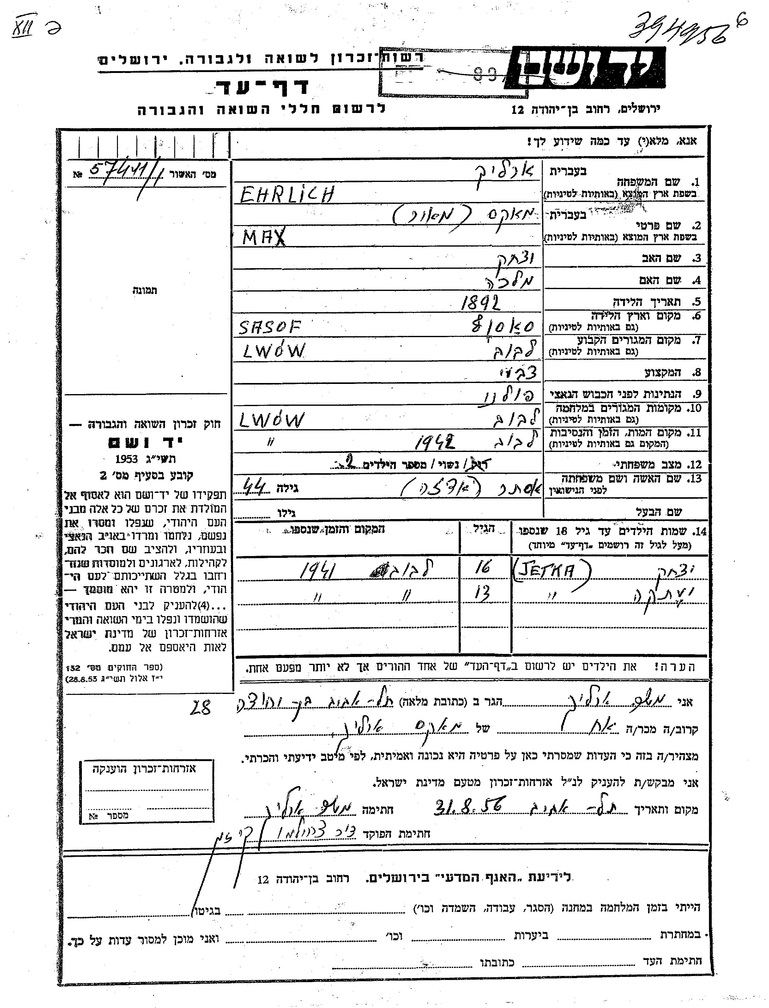 Yitzkhak Ehrlich wurde Er war der Sohn von Max Meir und Ester Edwarda. Er war Kind. Vor dem Zweiten Weltkrieg lebte er in Lwow, Polen. Während des Krieges war er in Lwow, Polen.