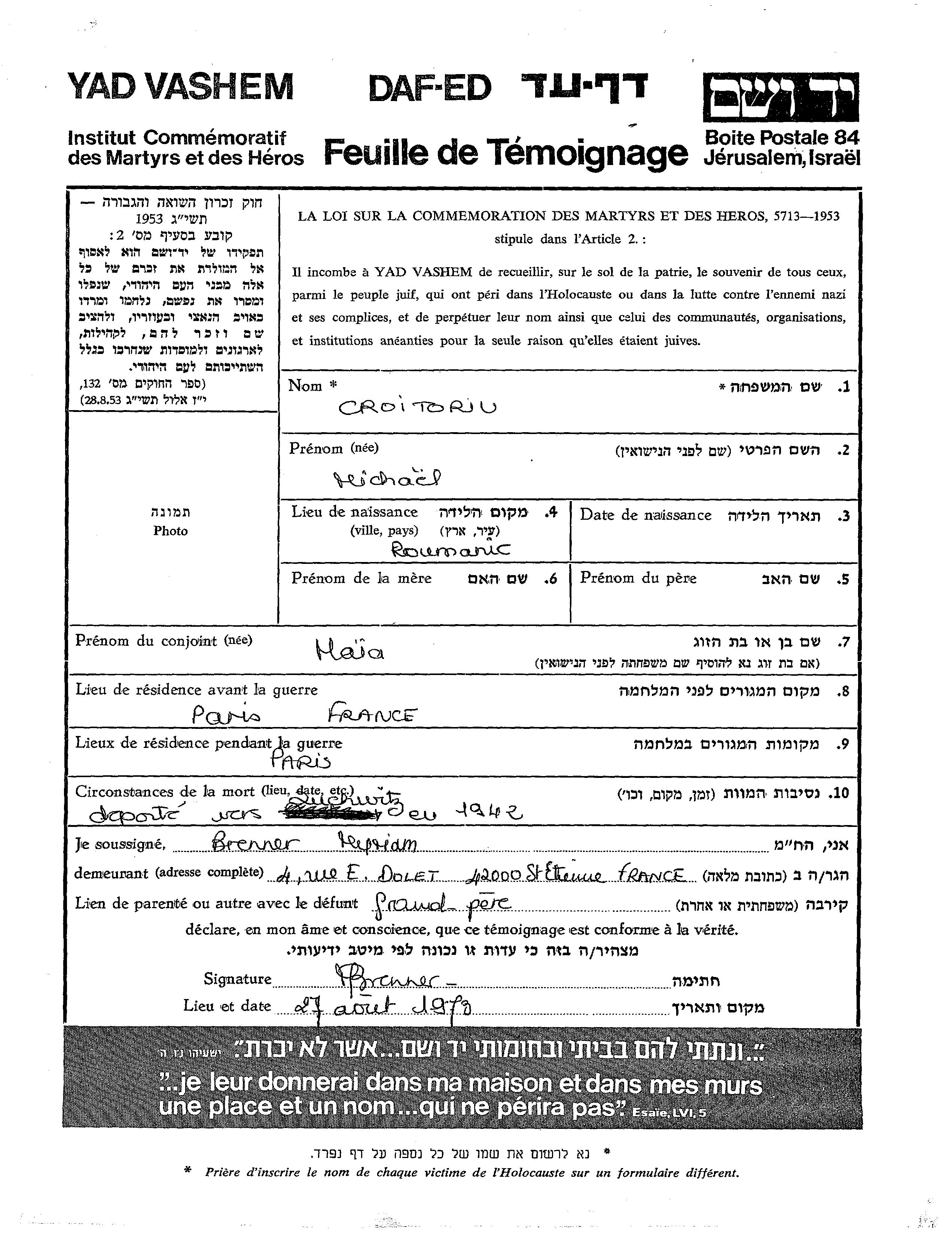 Michael Croitoriu wurde in Rumänien geboren. Vor dem Zweiten Weltkrieg lebte er in Paris, Frankreich. Während des Krieges war er in Paris, Frankreich.