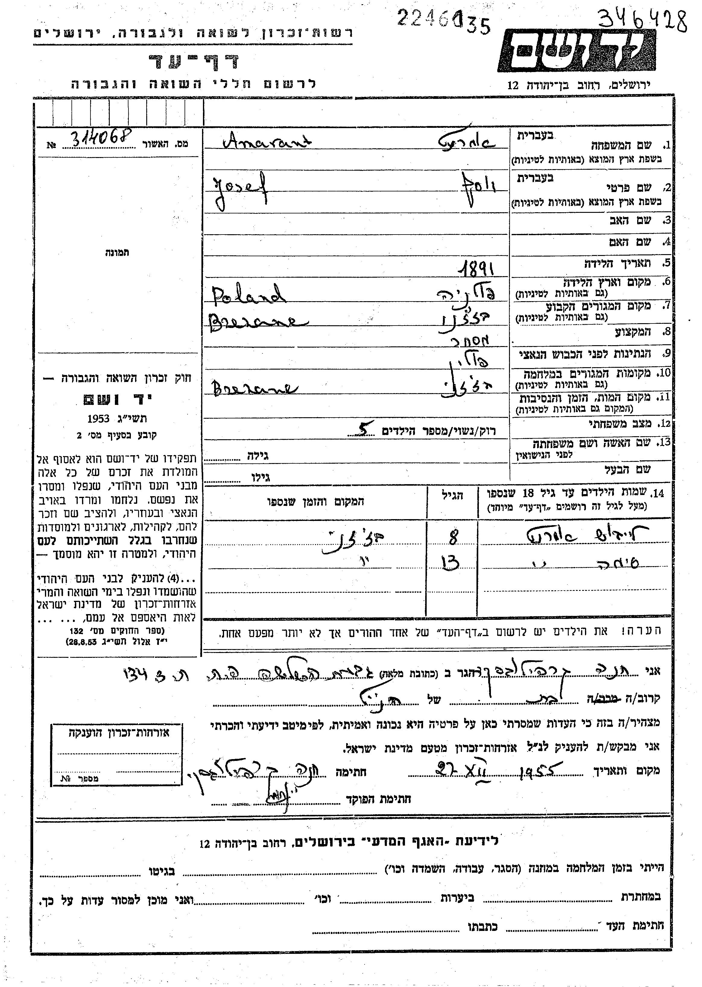Sima Amarant wurde Er/sie war der/ die Sohn/Tochter von Yosef und Chaia. Er/Sie war Kind. Vor dem Zweiten Weltkrieg er/sie in Brzezany, Polen. Während des Krieges war er/sie in Brzezany, Polen.