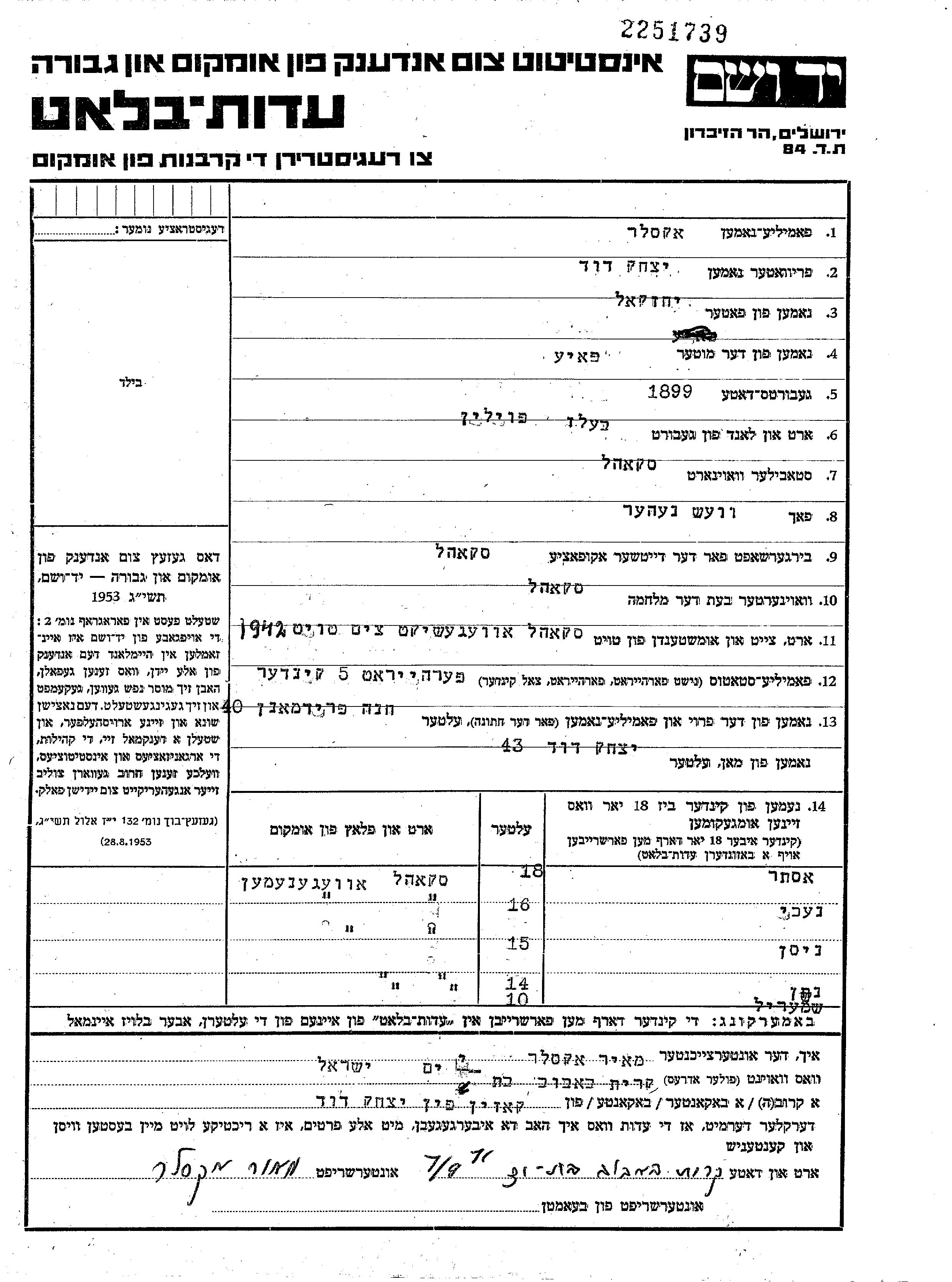Nekhi Aksler wurde Sie war die Tochter von Ytzkhak David und Khana. Sie war Kind. Vor dem Zweiten Weltkrieg lebte sie in Skol, Polen. Während des Krieges war sie in Skol, Polen.