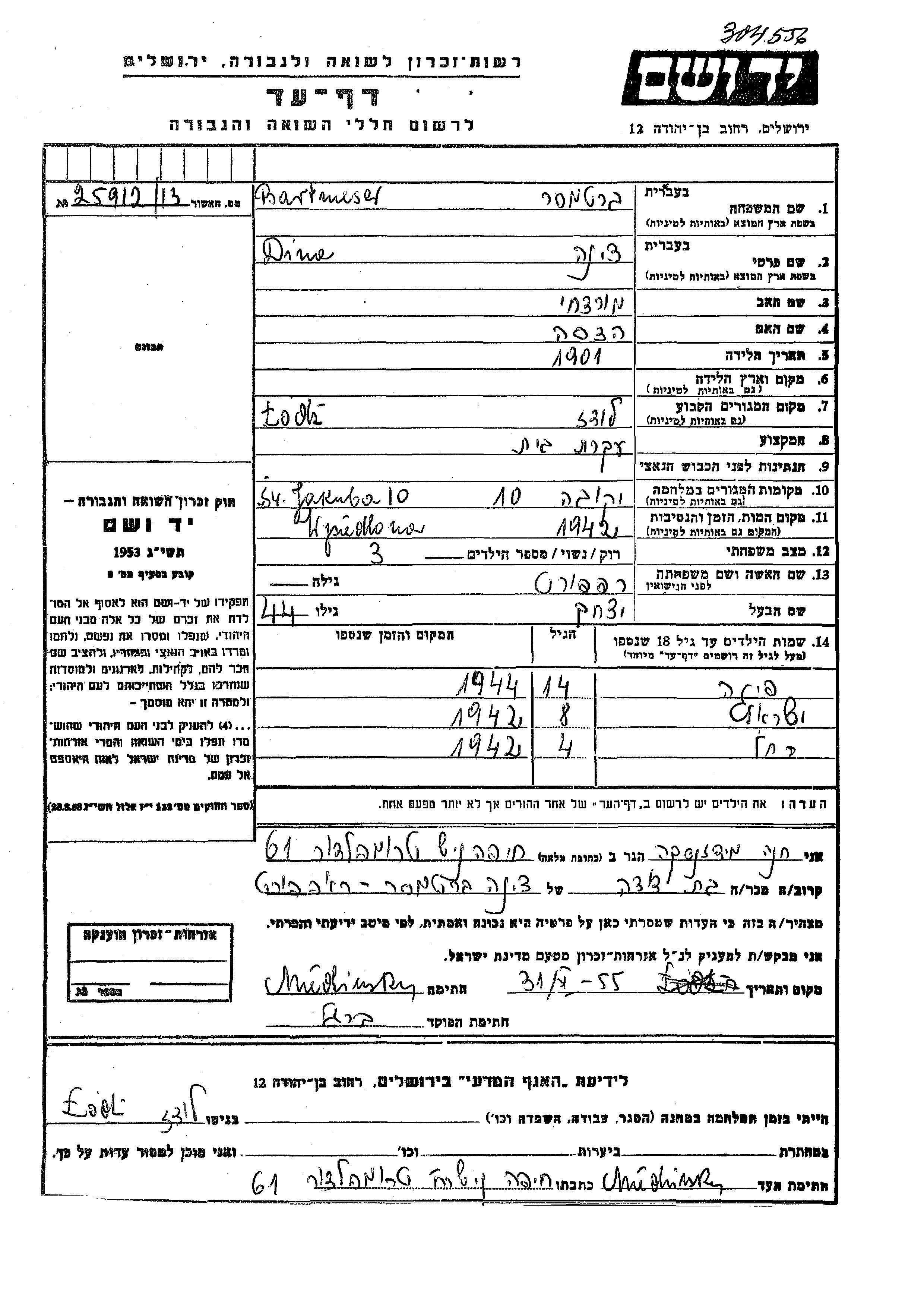 Bartmeser Feiga Lodz, Polen Gedenkblatt
