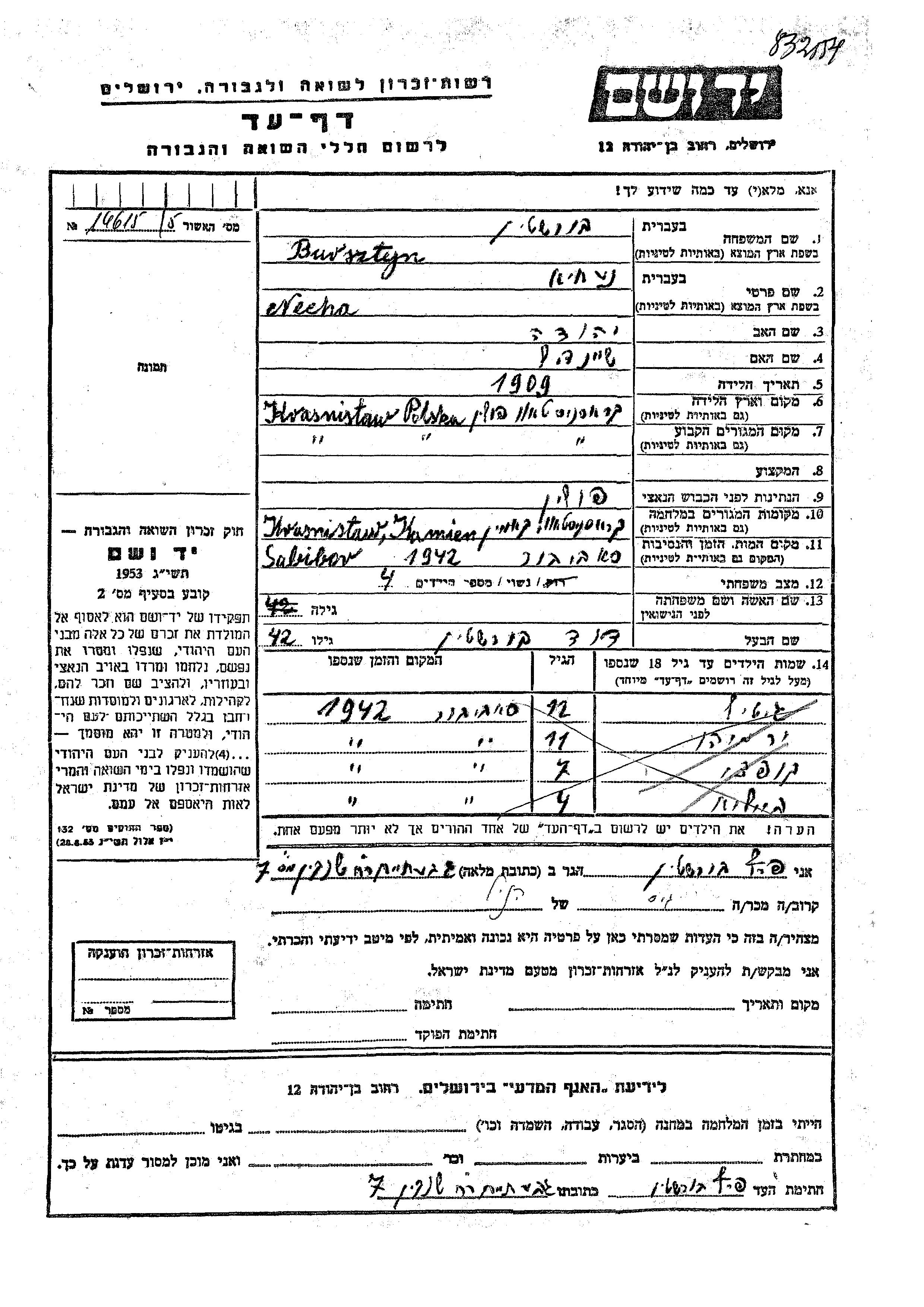 Batia Bursztyn wurde Sie war die Tochter von David und Necha. Sie war Kind. Vor dem Zweiten Weltkrieg lebte sie in Krasnistav, Polen. Während des Krieges war sie in Kamien, Polen.