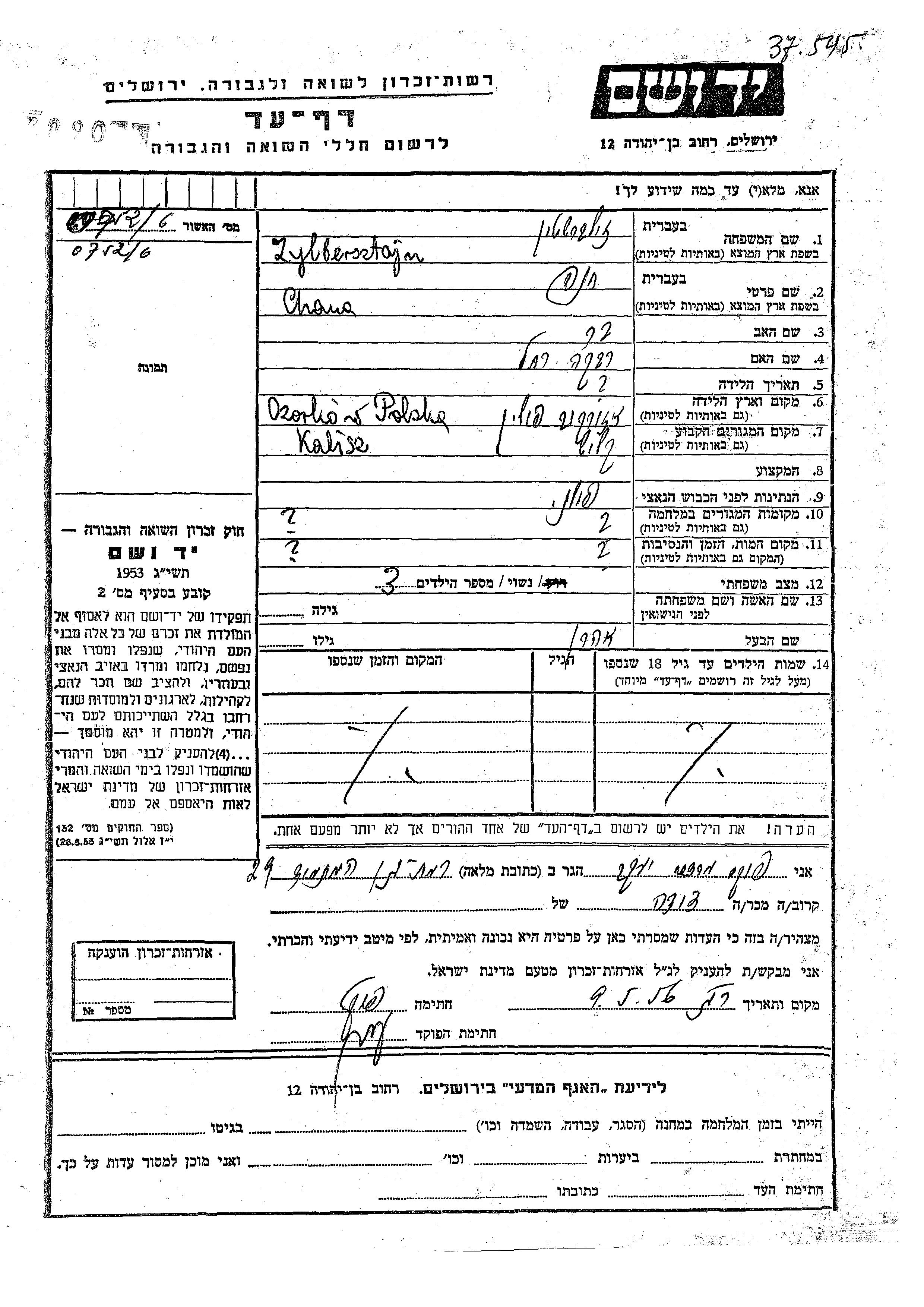 Zylberstajn Chana Kalisch, Polen Gedenkblatt