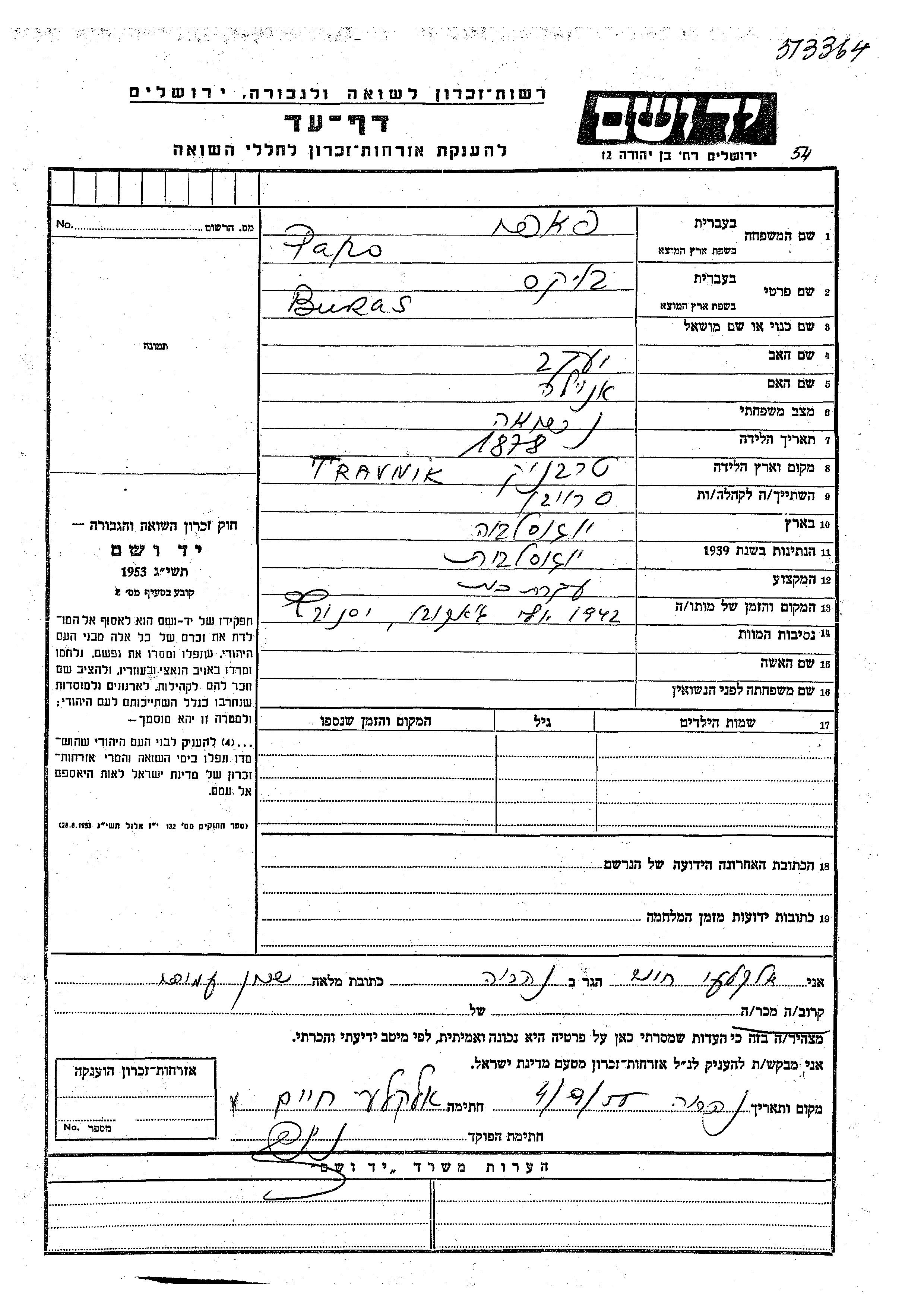 Bukas wurde in der Schoah ermordet. Todesort: Djakovo, Jugoslawien im Jahr 07/1942.