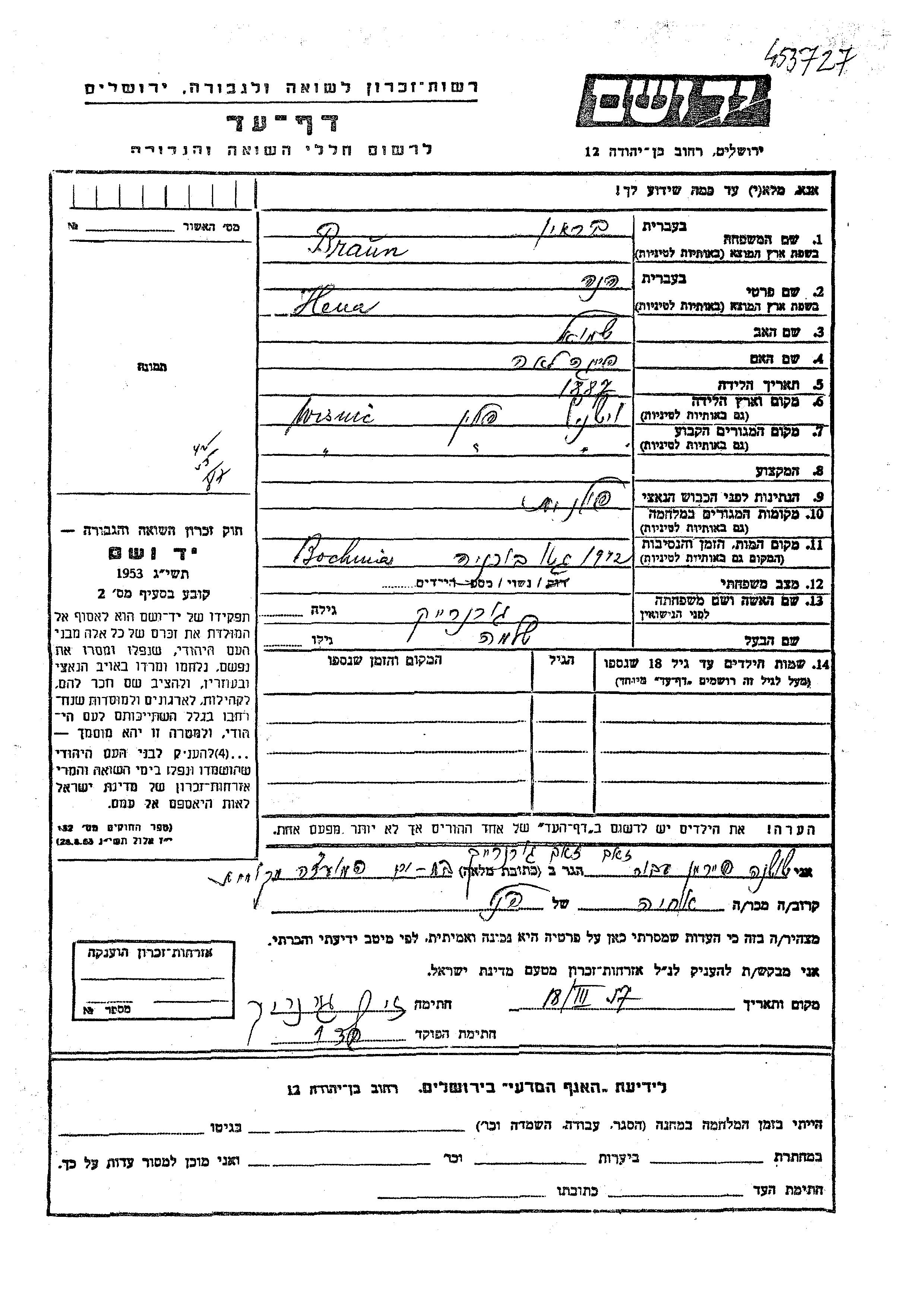 Hena wurde in der Schoah ermordet. Todesort: Bochnia, Polen im Jahr 1942.