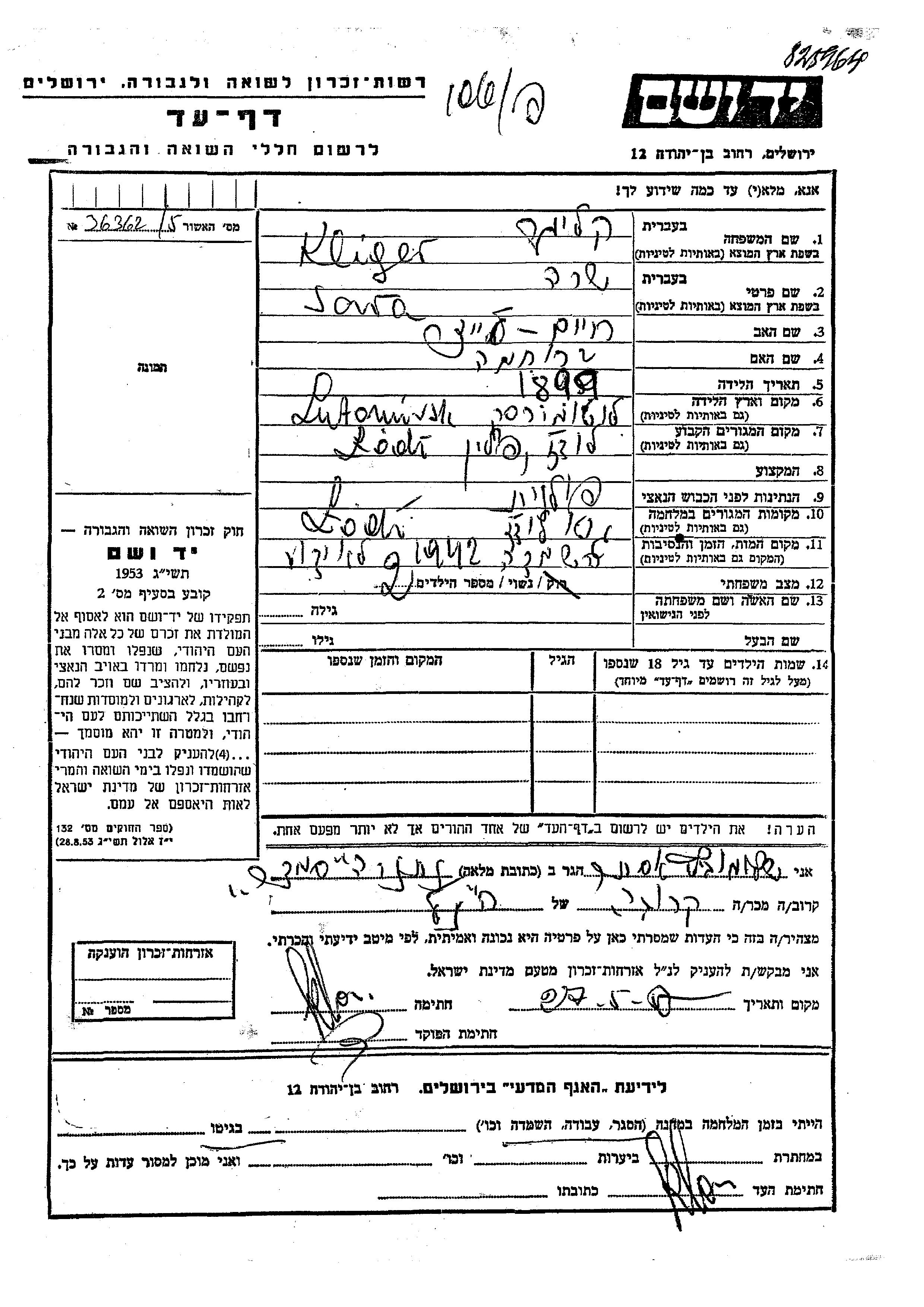 Sara Kliger wurde im Jahr 1899 in Lutomiersk, Polen geboren. Sie war die Tochter von Khaim Leizer und Rukhama. Sie war Verheiratet. Vor dem Zweiten Weltkrieg lebte sie in Lodz, Polen. Während des Krieges war sie in Lodz, Polen.