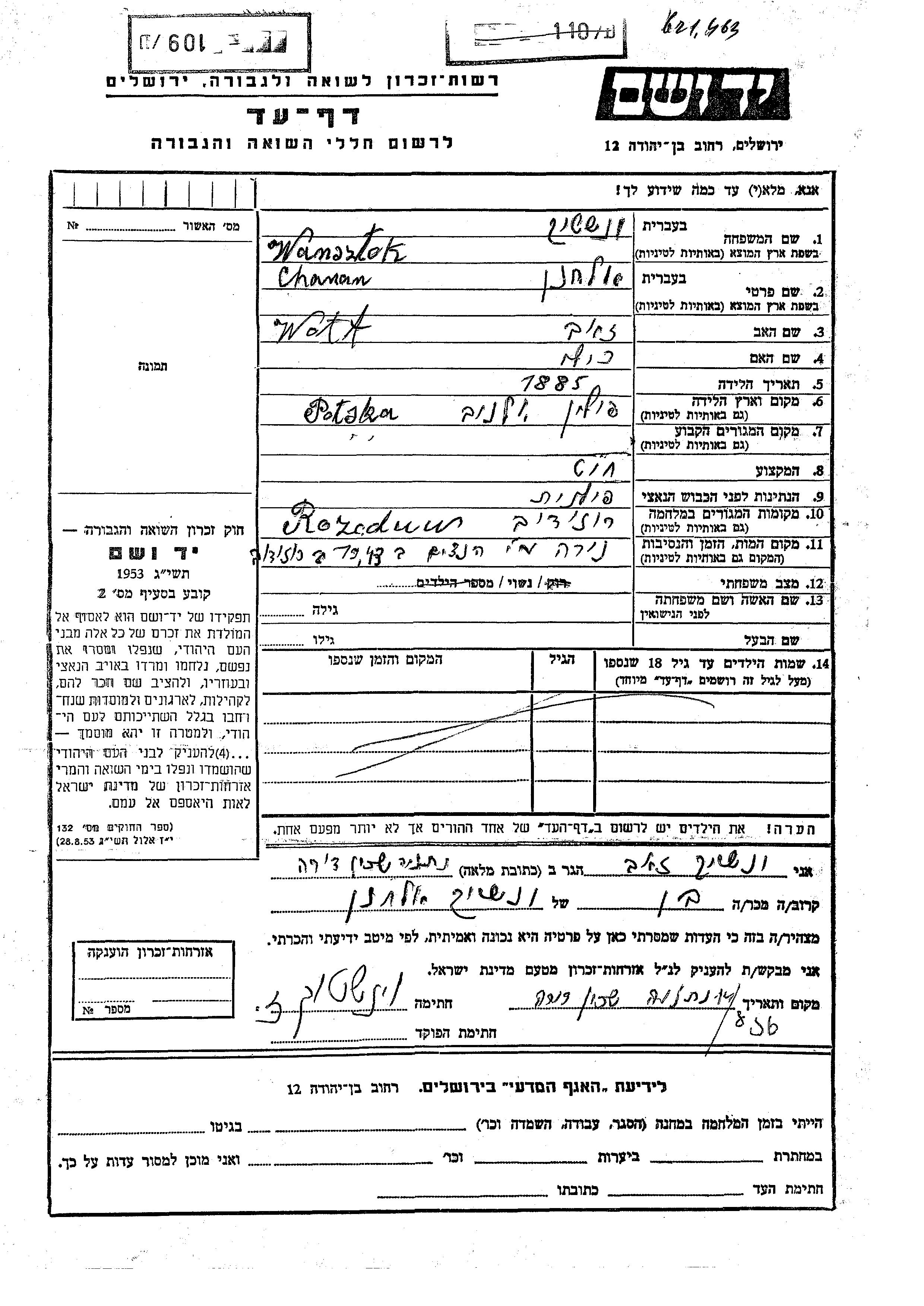 Chanan Elkhanan wurde in der Schoah ermordet. Todesort: Rozwadów, Polen im Jahr 1943.