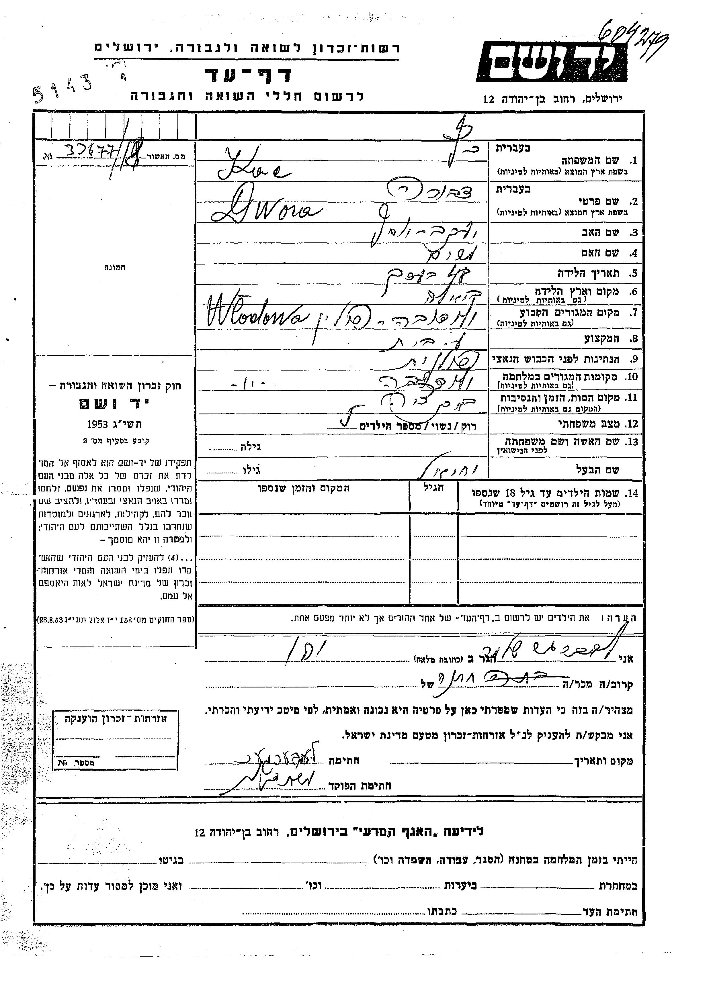 Dwora Kac wurde in Biala Podlaska, Polen geboren. Sie war die Tochter von Yaakov Yosef und Miriam. Sie war Hausfrau und mit Yekhiel Verheiratet. Vor dem Zweiten Weltkrieg lebte sie in Wlodawa, Polen. Während des Krieges war sie in Wlodawa, Polen.