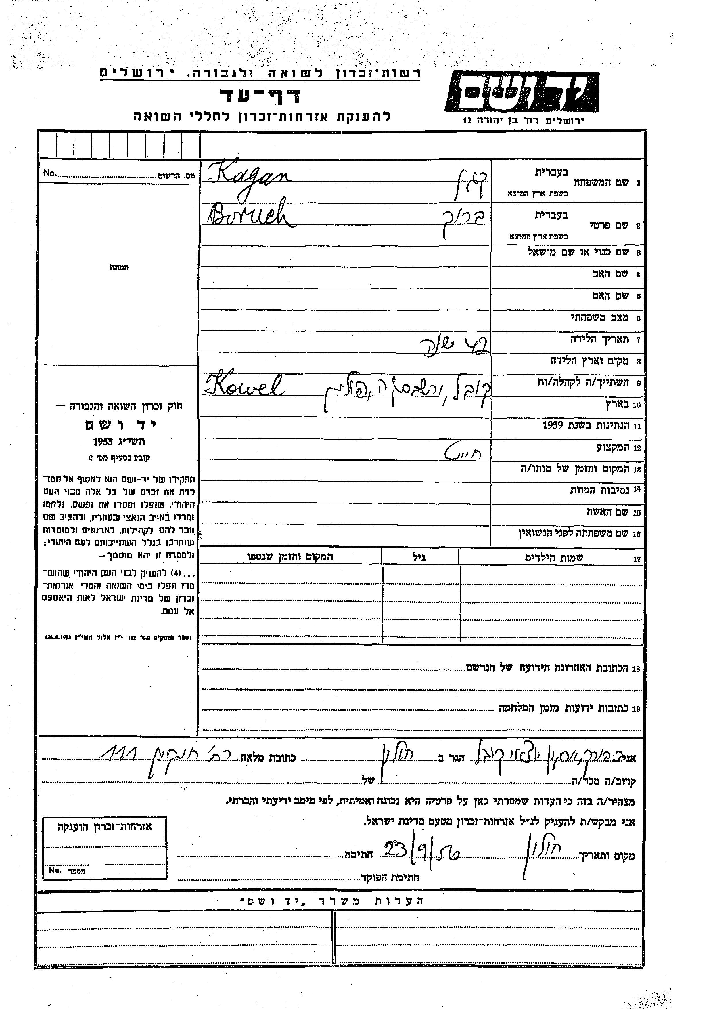 Baruch Kagan. Er war Schneider. Vor dem Zweiten Weltkrieg lebte er in Kowel, Polen.