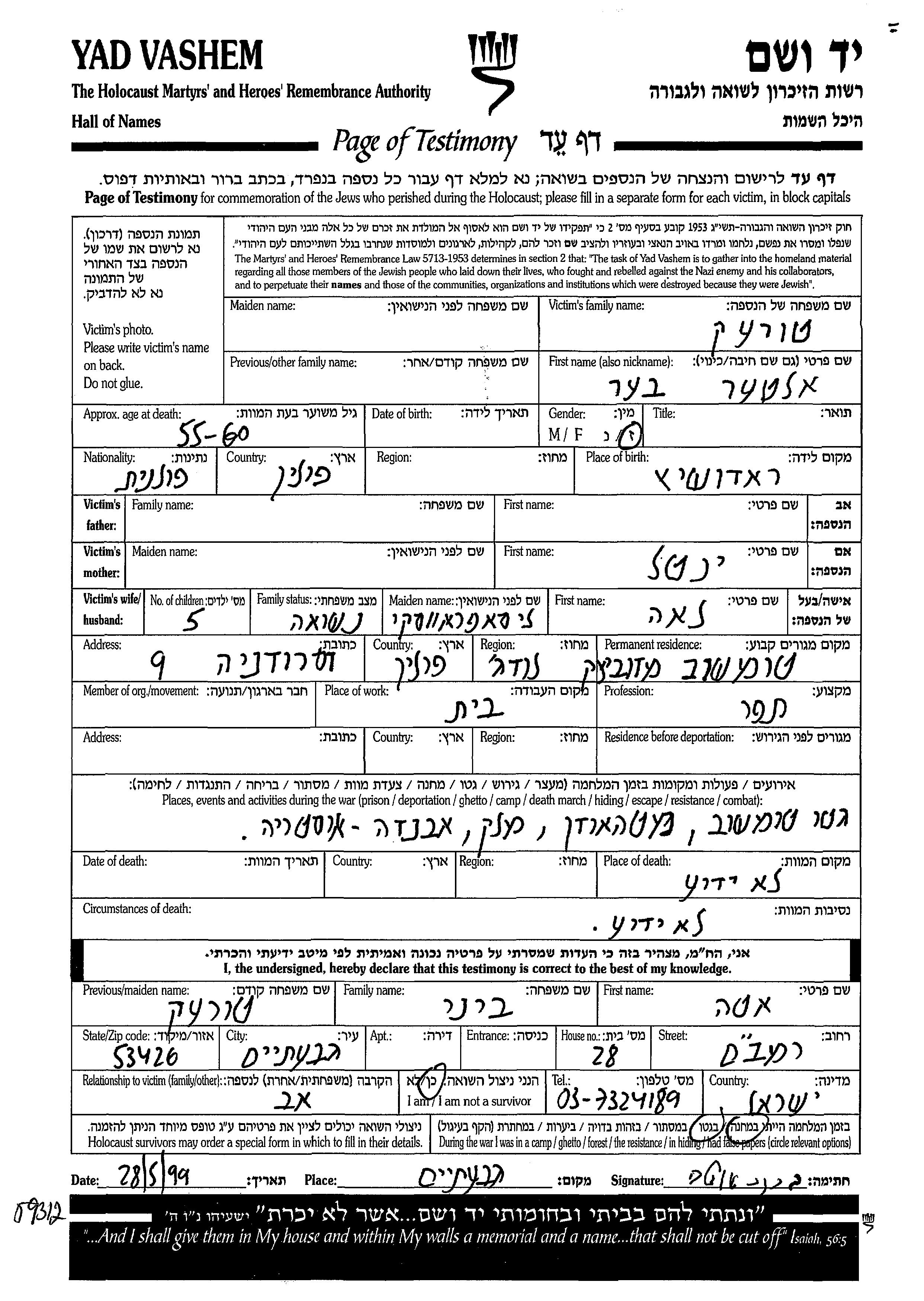Suche nach einem Todesjahr im Zeitraum der Holocaust: 1933 bis 1945. Bitte wählen Sie 'Exakt' im Auswahlmenü, um nur nach einem einzelnen Jahr zu suchen, alternativ können Sie die flexibleren Optionen '+/- 2 Jahre' oder '+/- 5 Jahre' wählen.