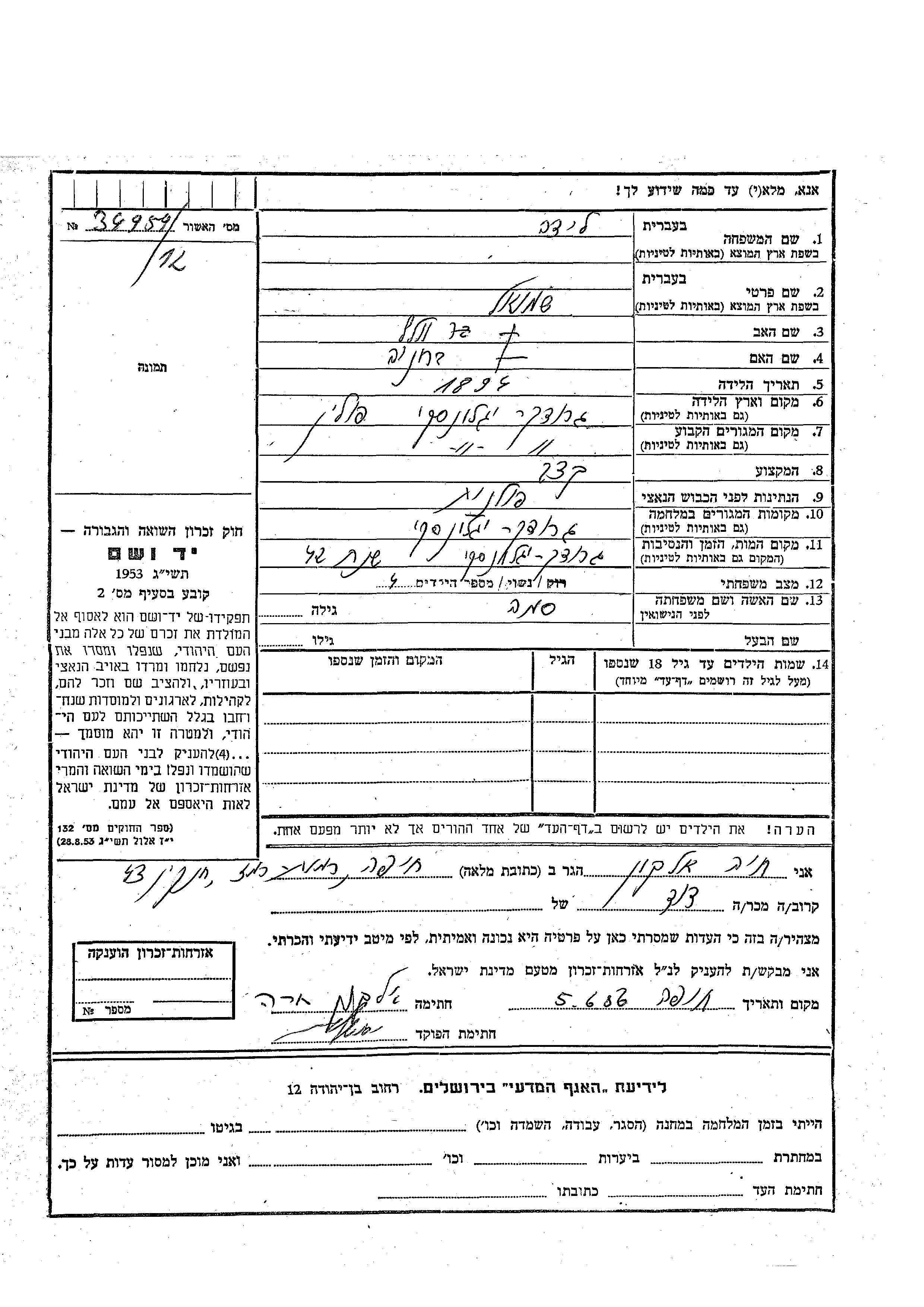 Shmuel Lida wurde im Jahr 1894 in Grodek Jagiellonski, Polen geboren. Er war der Sohn von Volf und Bronia. Er war Metzger/-in und mit Sama Verheiratet. Vor dem Zweiten Weltkrieg lebte er in Grodek Jagiellonski, Polen. Während des Krieges war er in Grodek Jagiellonski, Polen.
