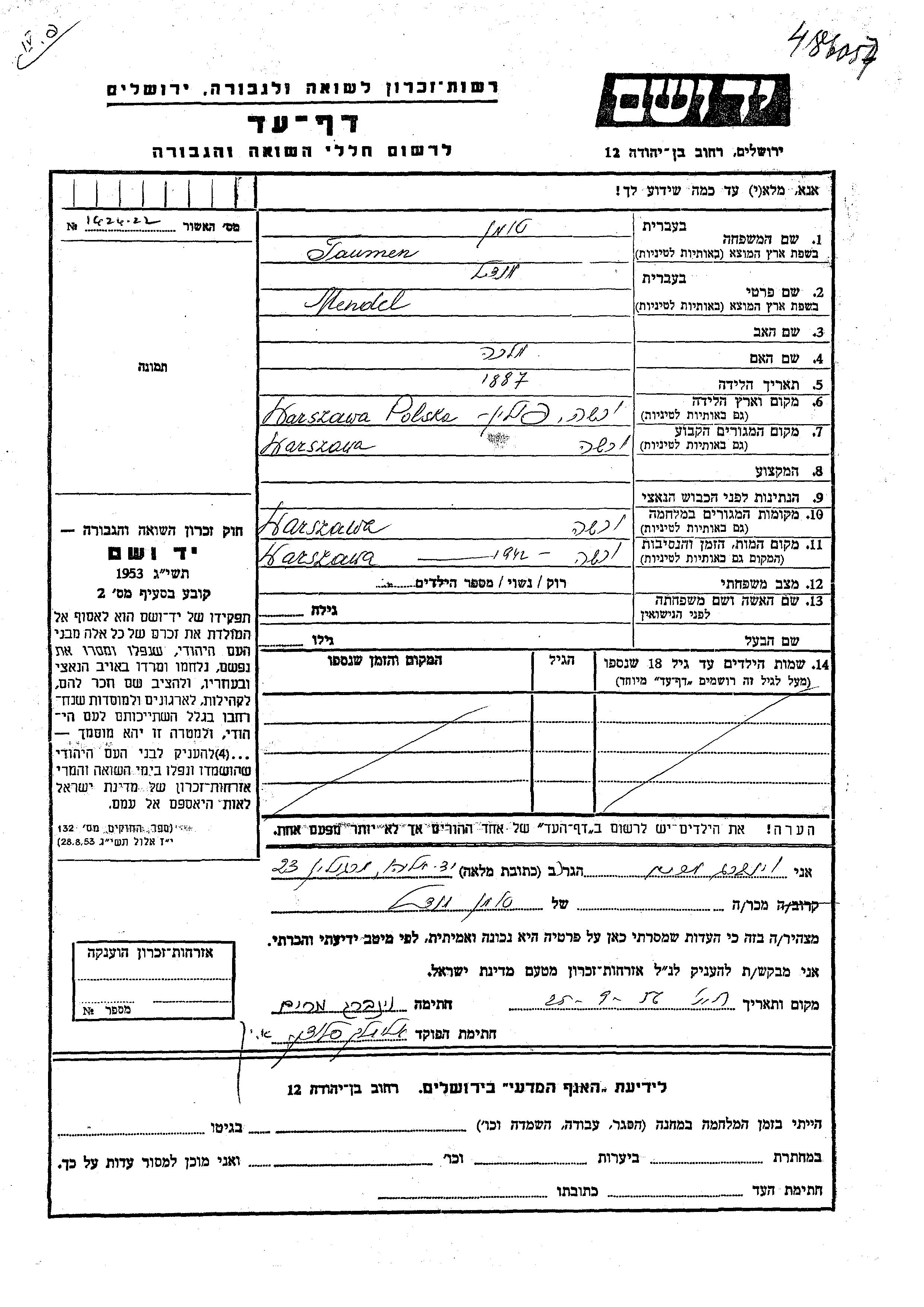 Mendel wurde in der Schoah ermordet. Todesort: Warszawa, Polen im Jahr 1942.