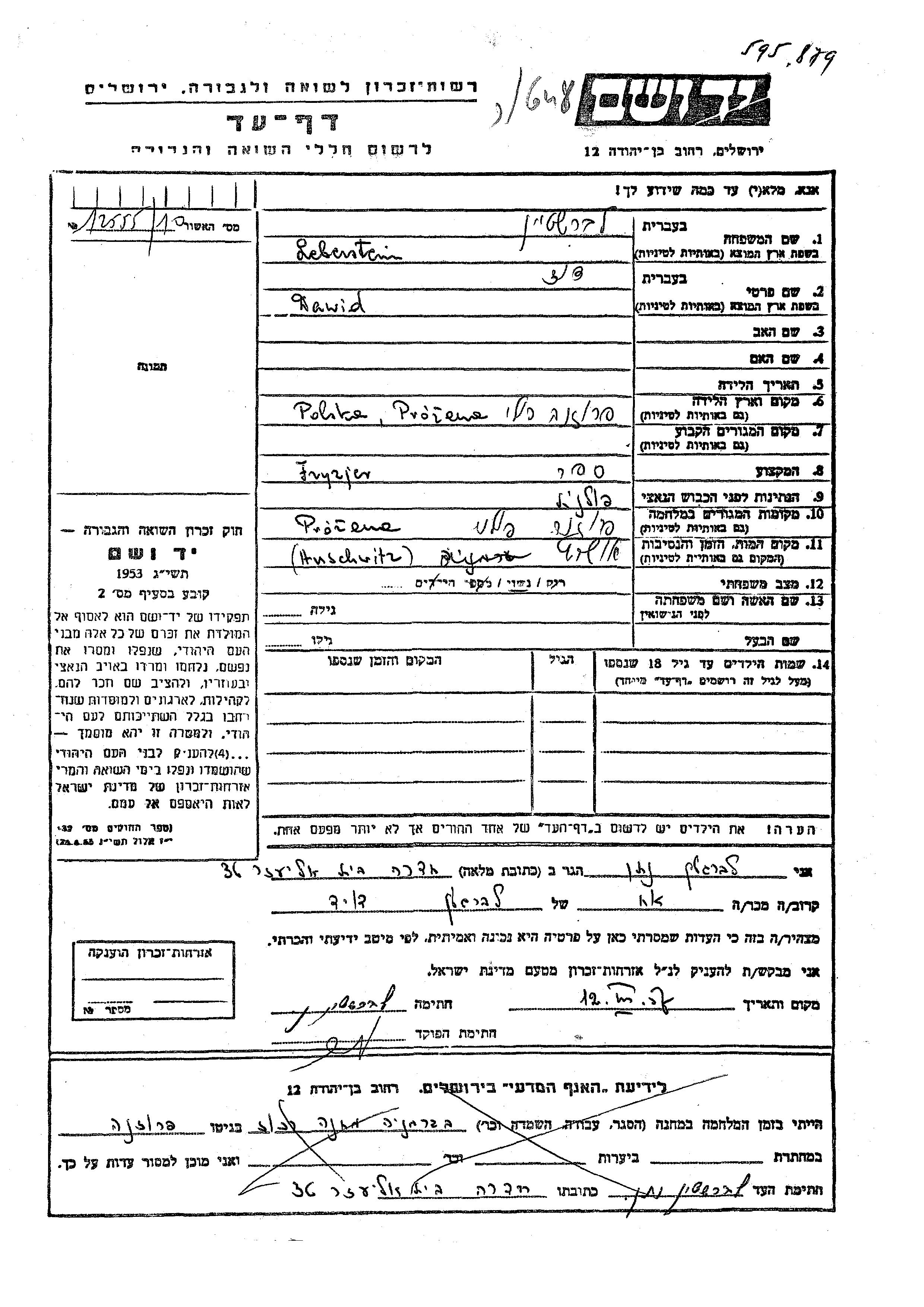Dawid wurde in der Schoah ermordet. Todesort: Auschwitz, Polen.