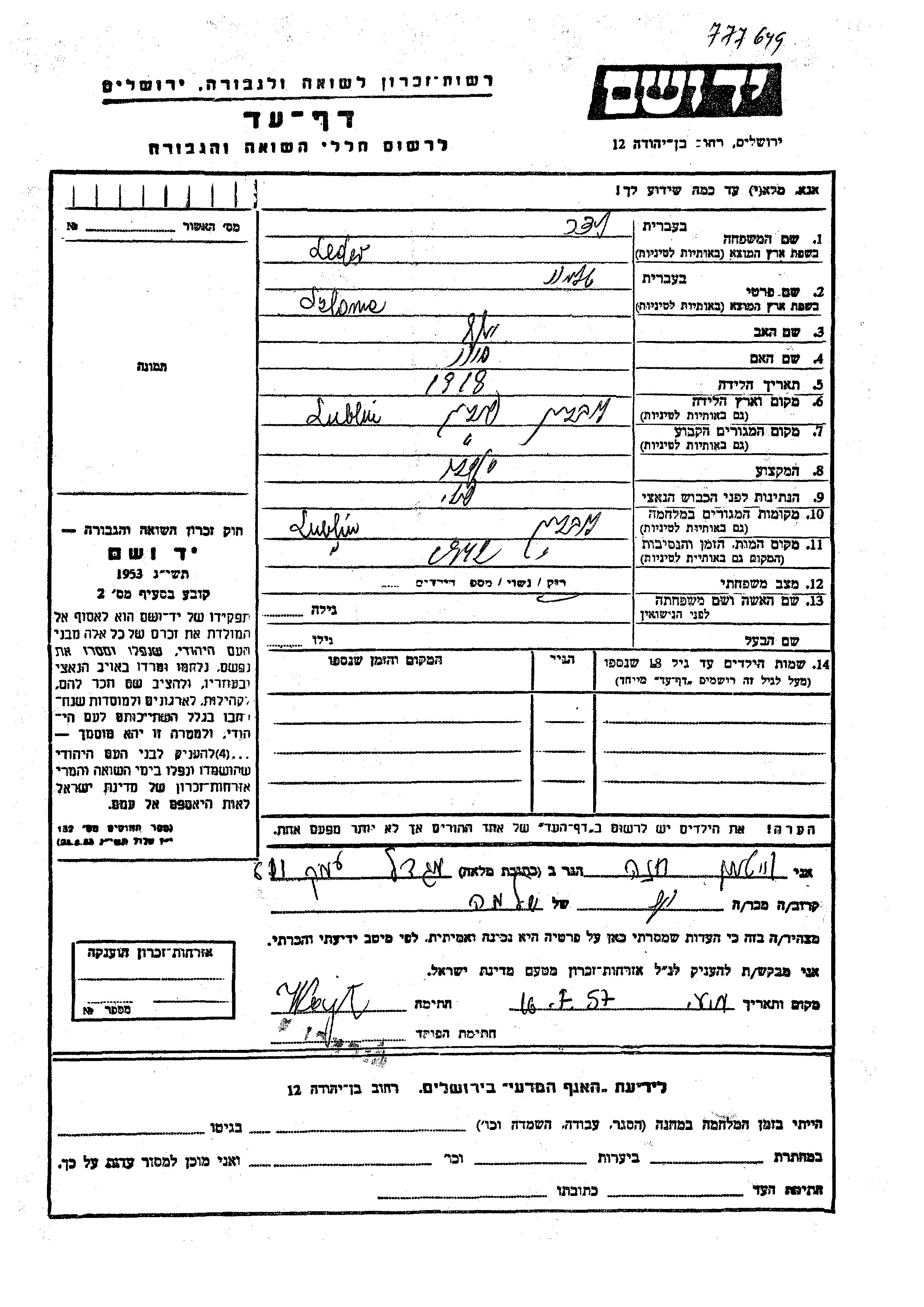 Szlome wurde in der Schoah ermordet. Todesort: Lublin, Polen im Jahr 1942.
