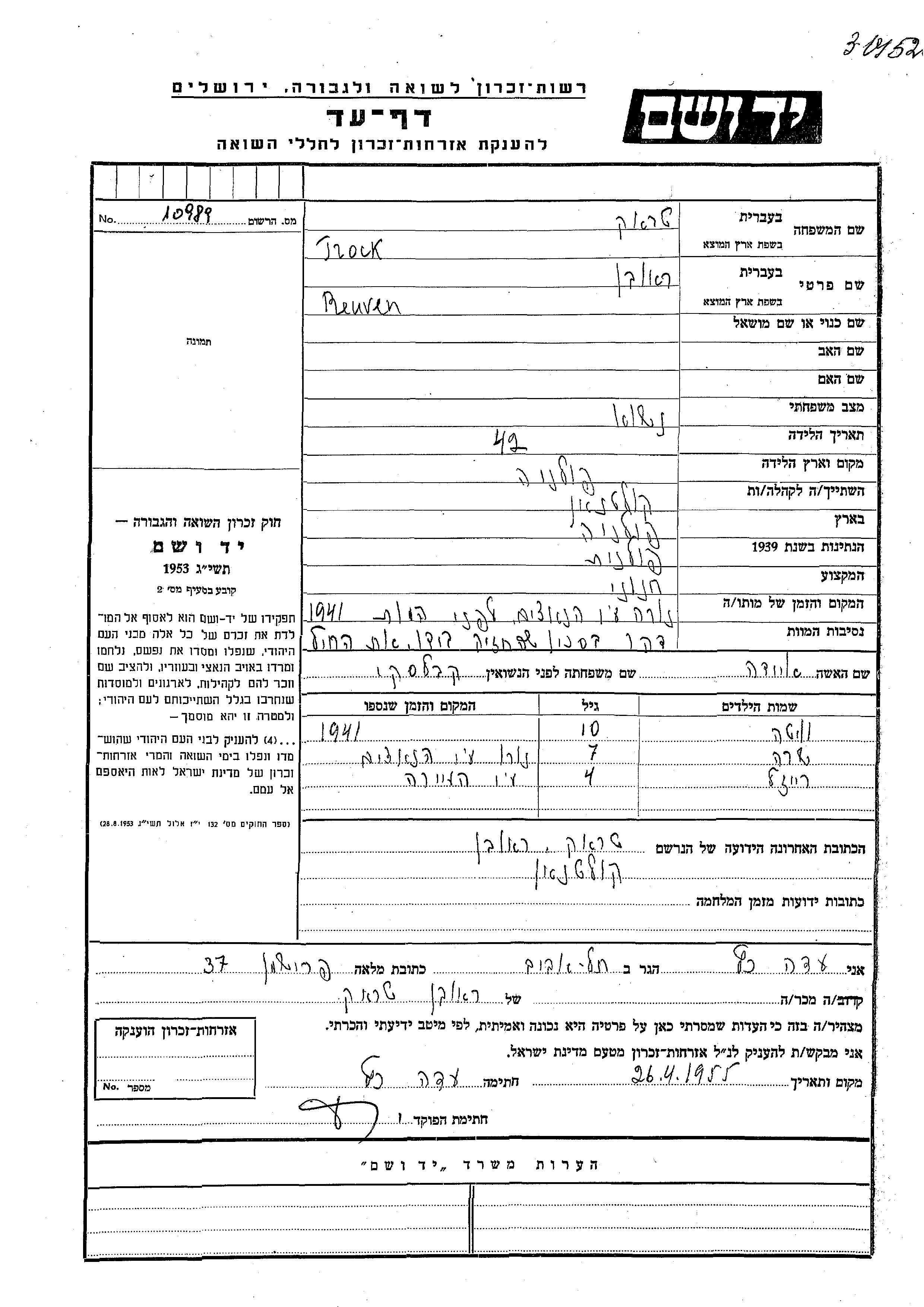 Reuven wurde in der Schoah ermordet. Todesort: unbekannt im Jahr 1941.