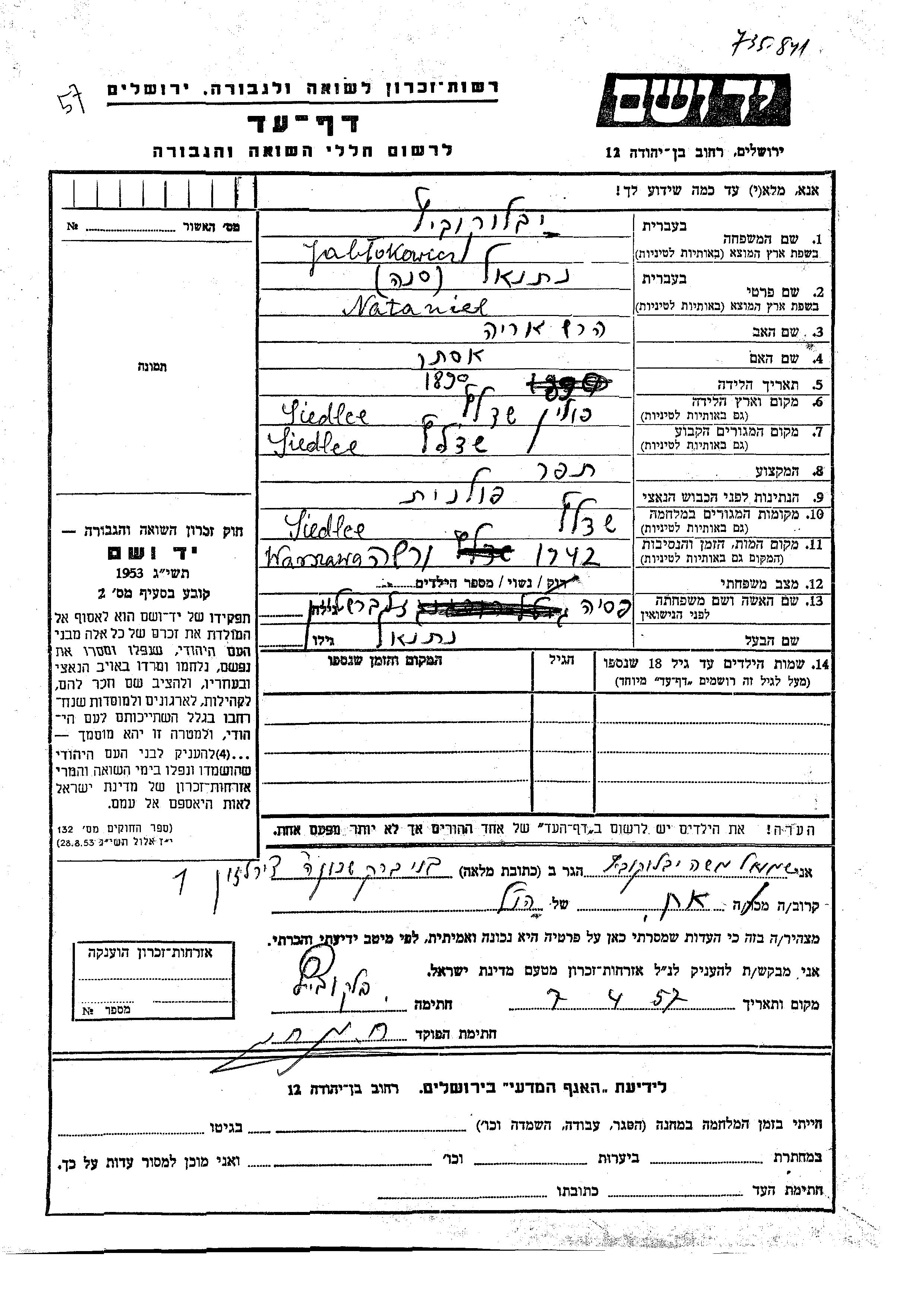Natanel Sana wurde in der Schoah ermordet. Todesort: Warsaw, Polen im Jahr 1942.