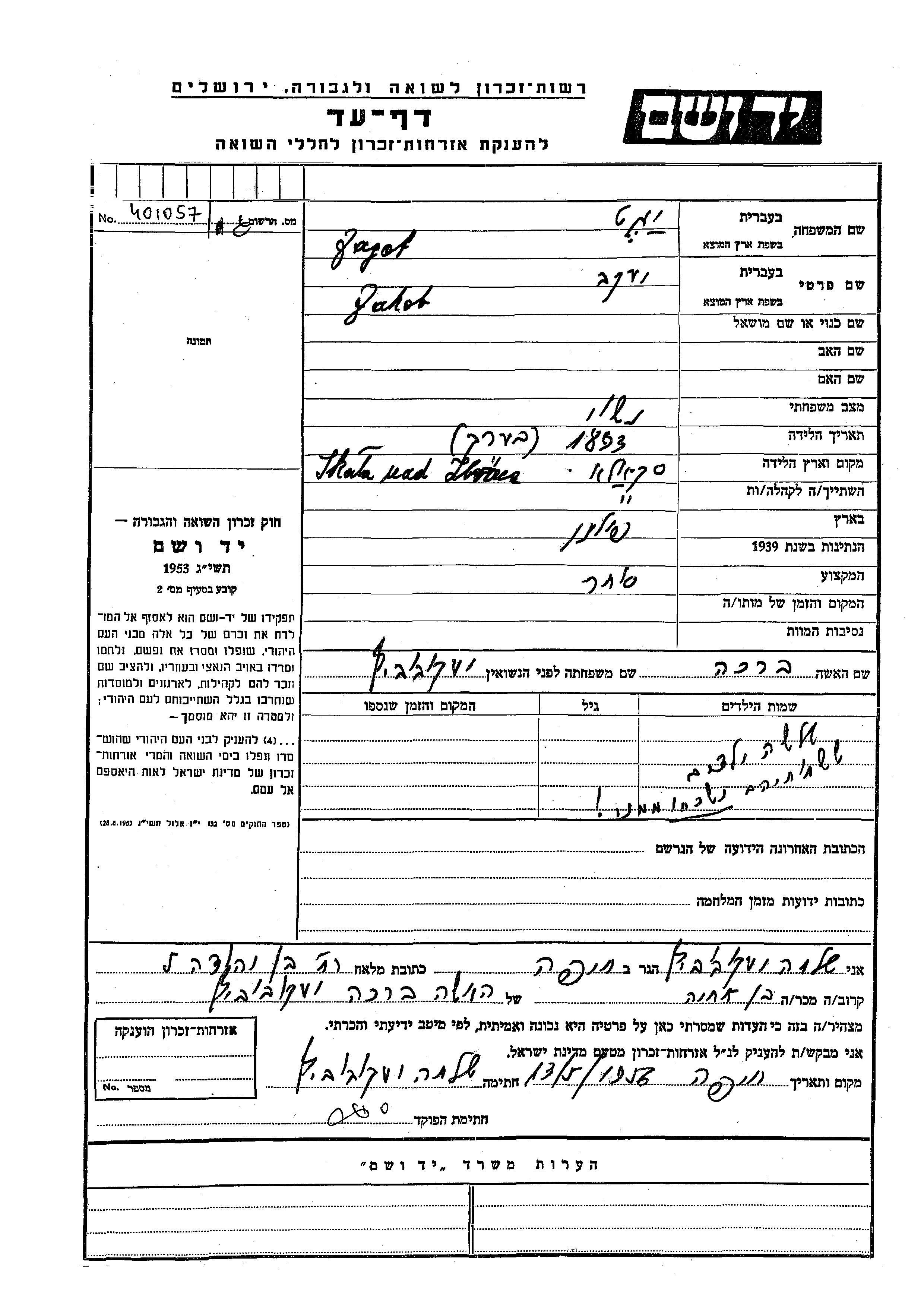 Jakob Jaget wurde im Jahr 1893 in Skala, Polen geboren. Er war Kaufmann/-frau und mit Brakha, geb. Yakubovitz Verheiratet.